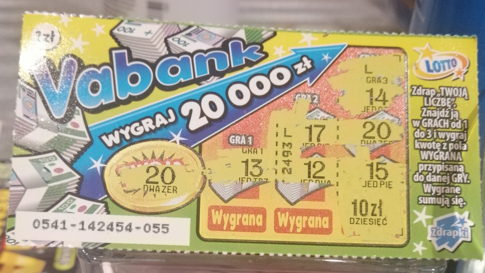 Zostało mi 15 sztuk do wydrapania, sama drobnica się trafia w numerze 55 wpadło 10 zl