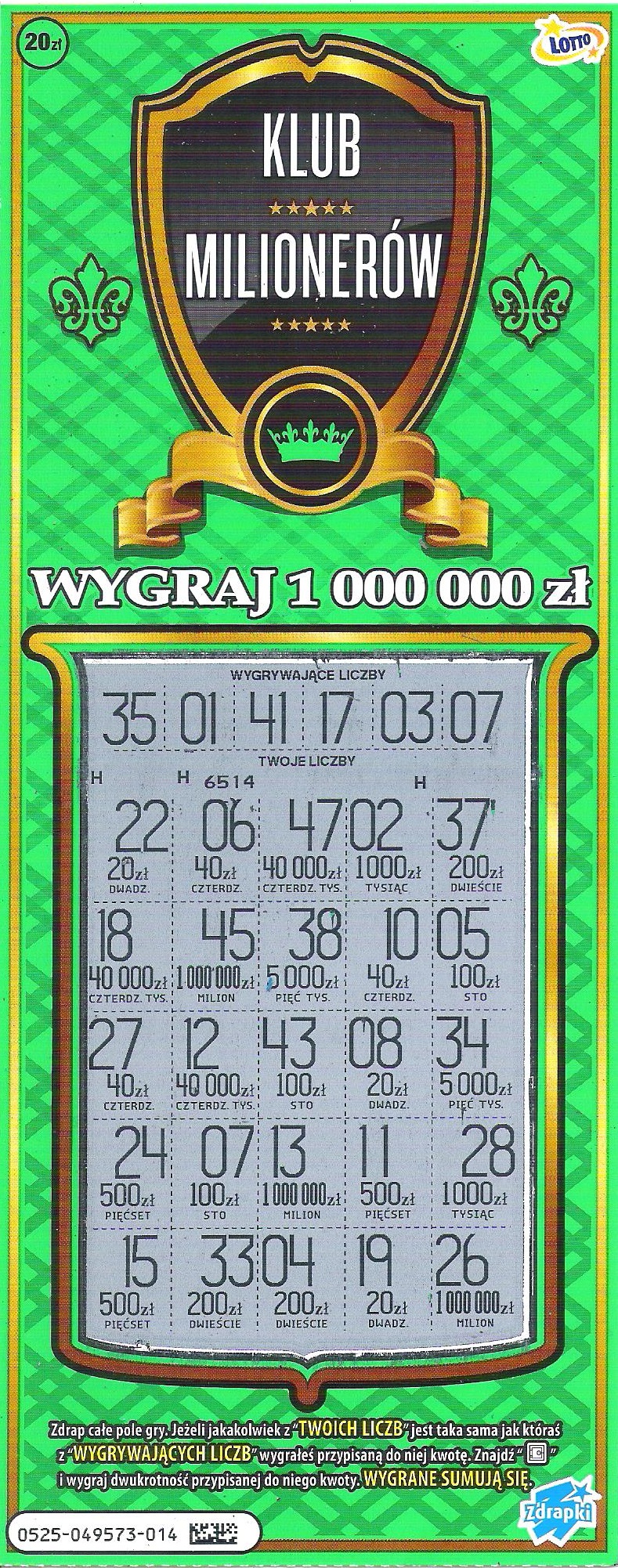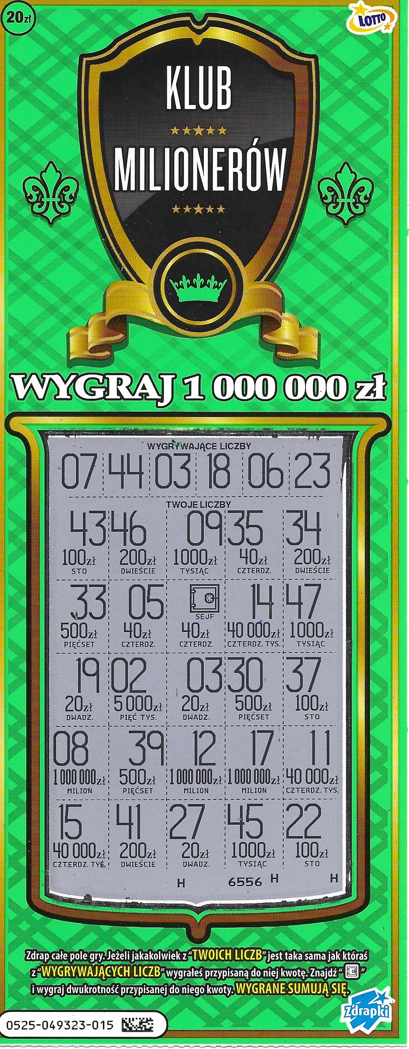 Wymieniłam dziś rano 40 zł z wczorajszej Mega Wielkiej Pensji na dwa Kluby. Zdrapka nr 009 była pusta, natomiast w 015 trafiłam 100 zł