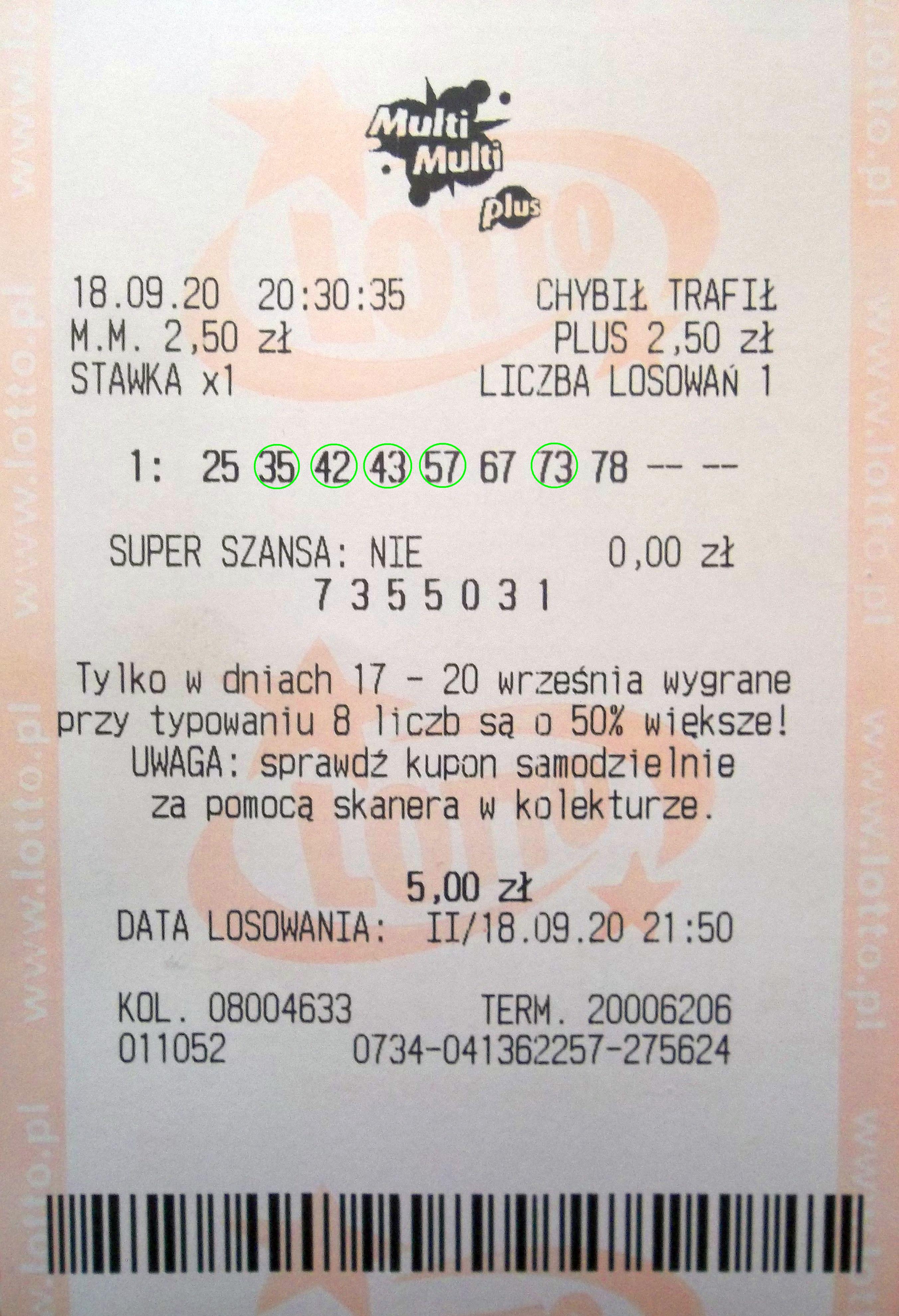 Ogólnie wydane 100zł zwrot 46zł na 10 losowań