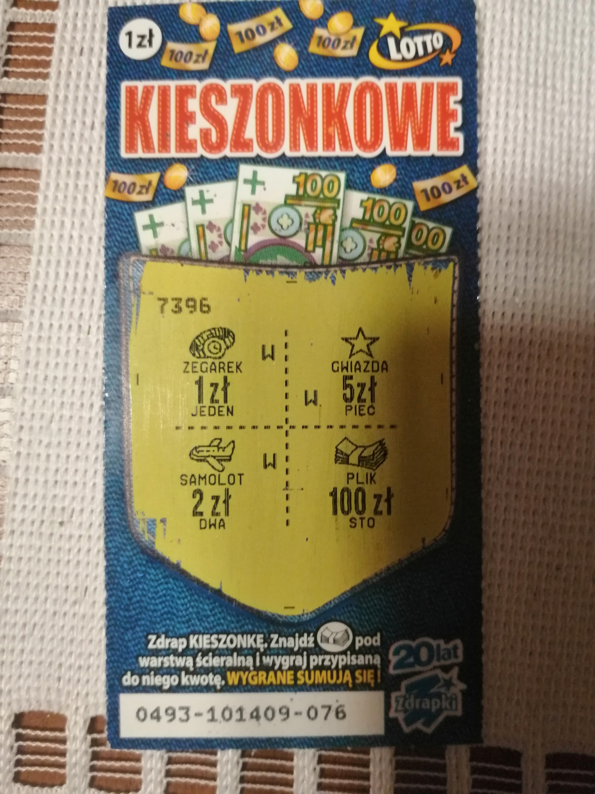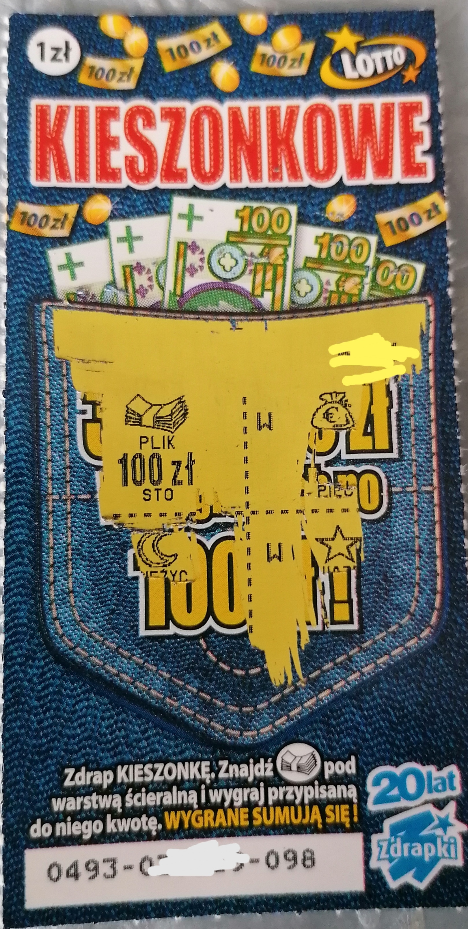 Rzadko biorę zdrapki za 1 zł, ale jak już biorę to właśnie Kieszonkowe. Wziąłem 2 zdrapki po kolei numer 99 i 98. W 99 była złotówka a w 98 moja pierwsza ( i podejrzewam że ostatnia) główna w życiu