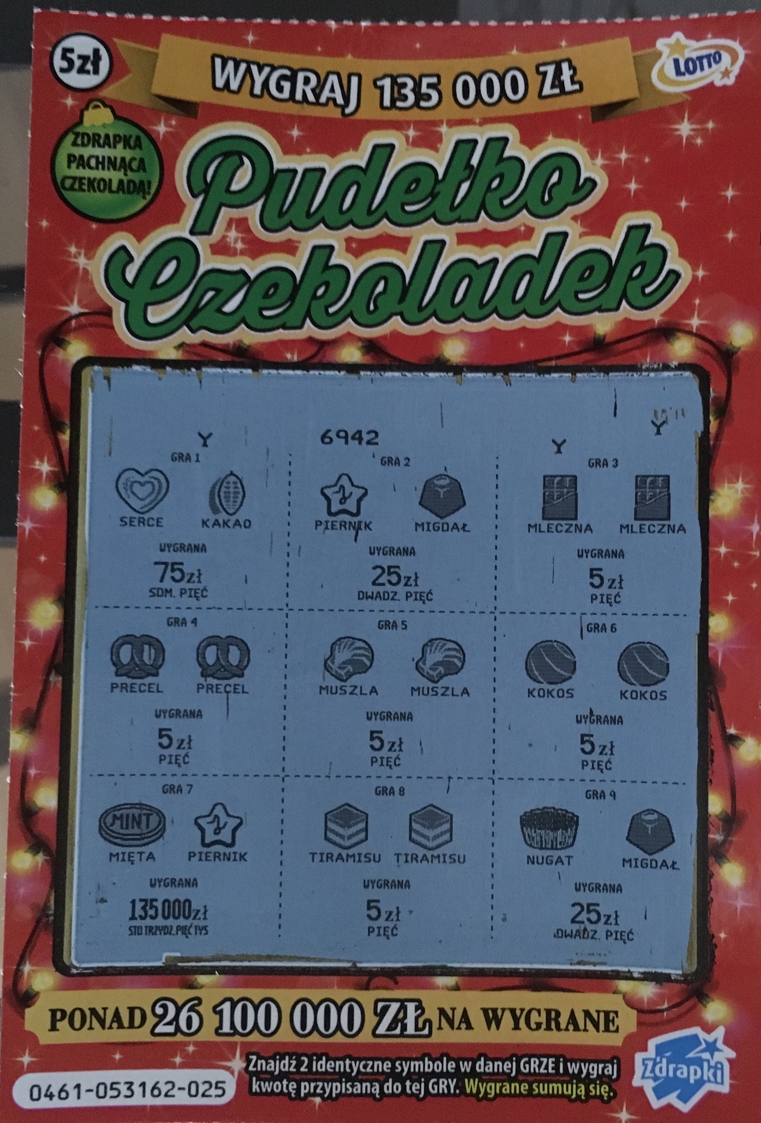 Kupiłam dwie sztuki rano, nr 041 pusty oraz nr 043, w którym trafiłam 50 zł ;)