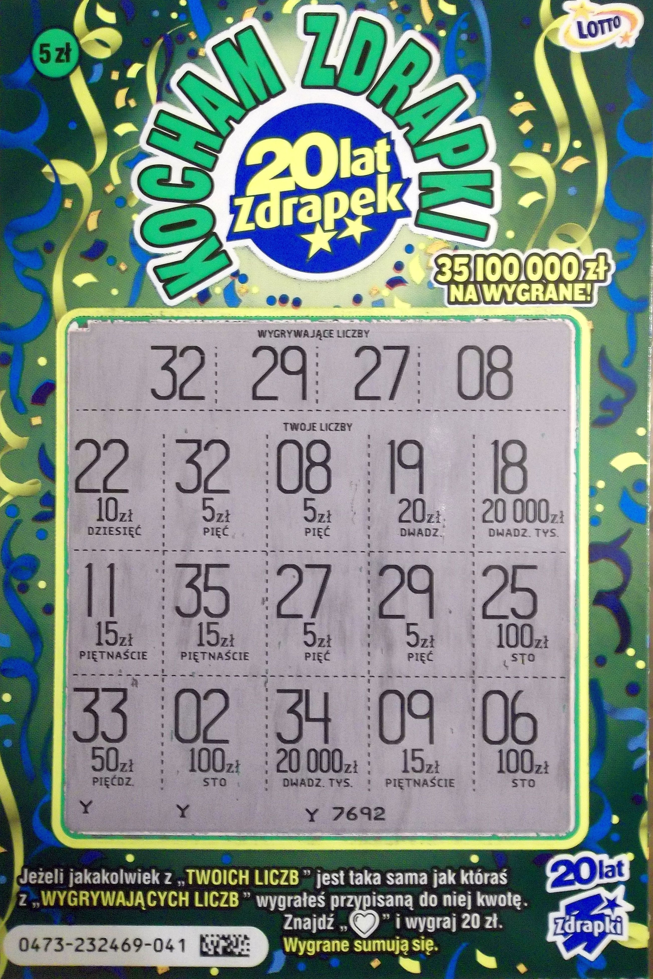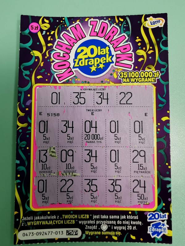 W zdrapkach brakowało mi do kolekcji wygranej II stopnia i o to mam