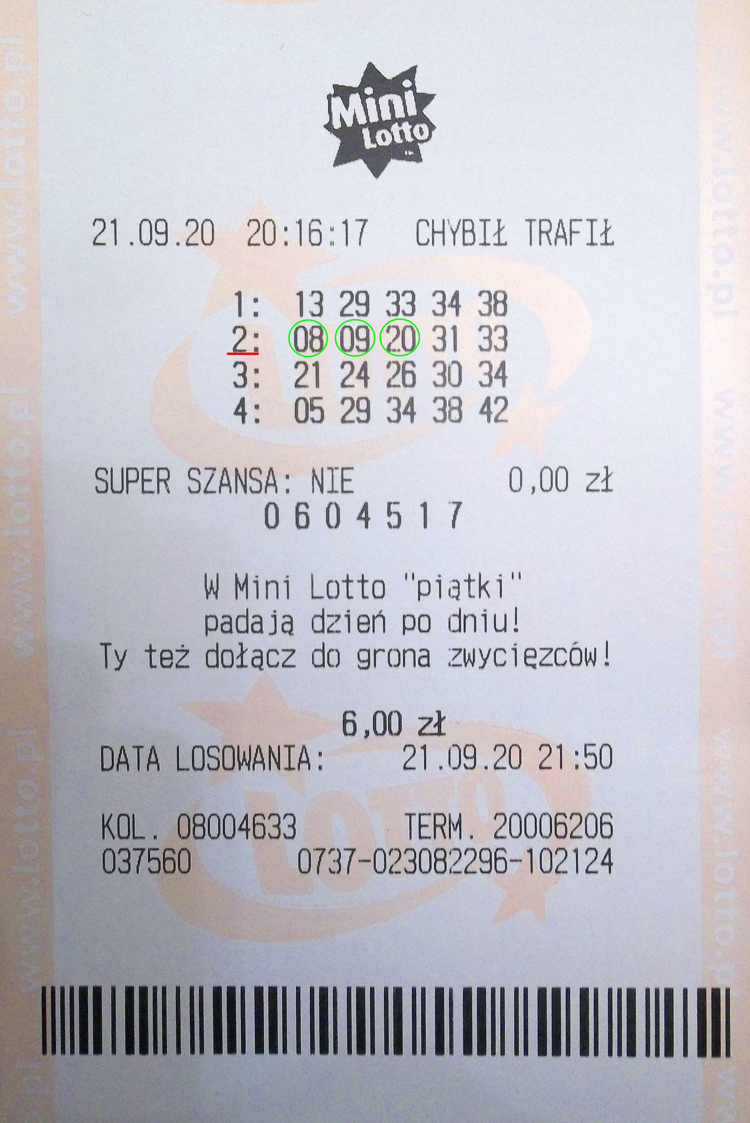 Wpadła trójka. Grałem w niedzielę, ponieważ często wtedy nie wpada piątka (mało graczy), a tu jak na złość padły aż trzy główne