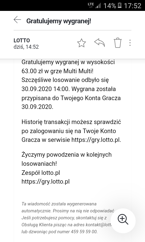 Takie oto szczęście w nieszczęściu. Jest 40 mogłoby być 1400.
