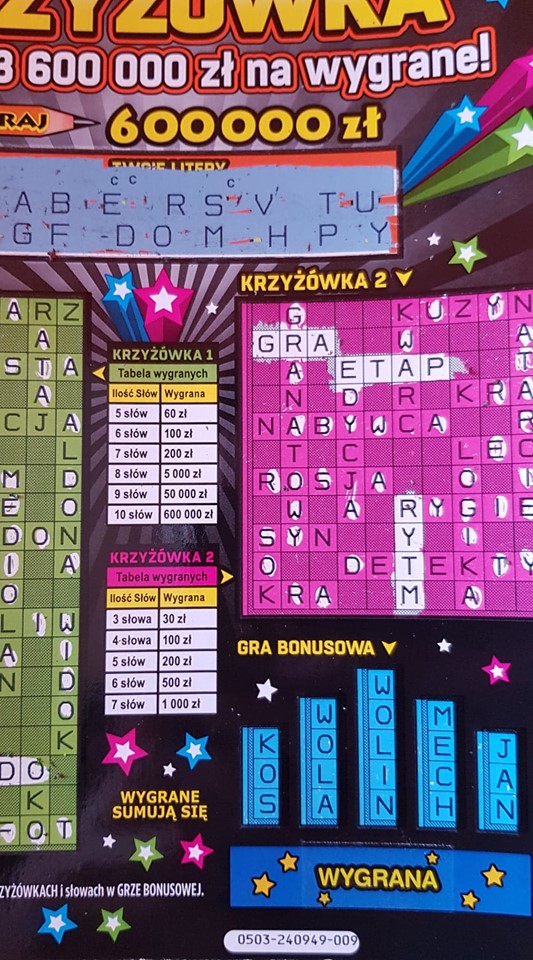 Gratulacje, liczę na to, że też w końcu coś w niej ustrzelę, póki co nie przekroczyłem bariery 60złxxxczokxxx6000 pisze: ↑20 gru 2020, 18:50Bardzo dawno nic nie drapałem miały być brylanty ale ich nie było , była krzyżówka więc na nią postawiłem![]()