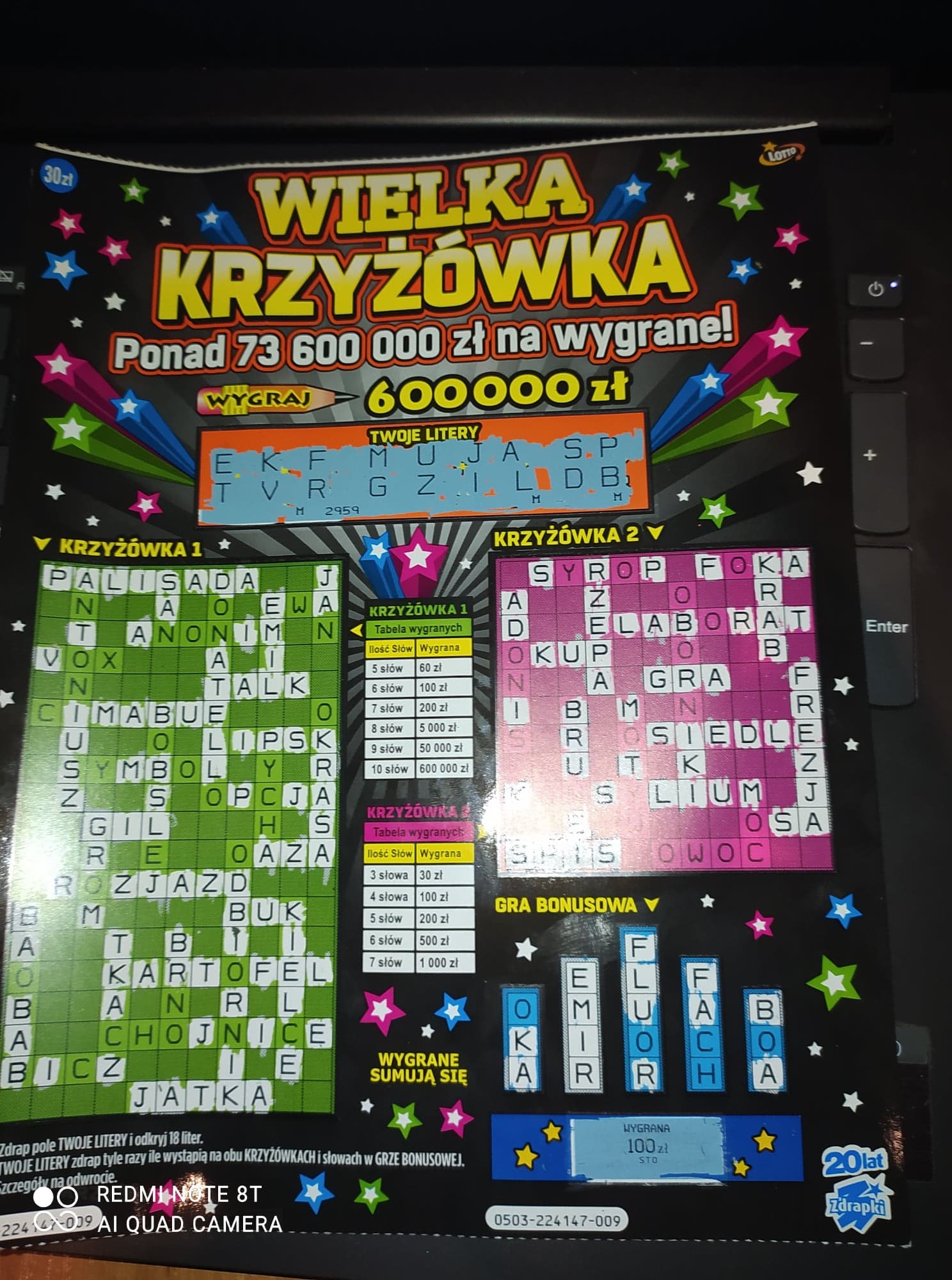 Bardzo niskie numery zdrapki widziałem w kolekturze. 8xxX trzeba będzie podrapać.