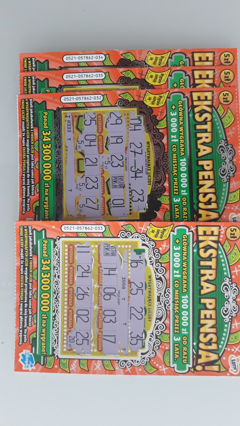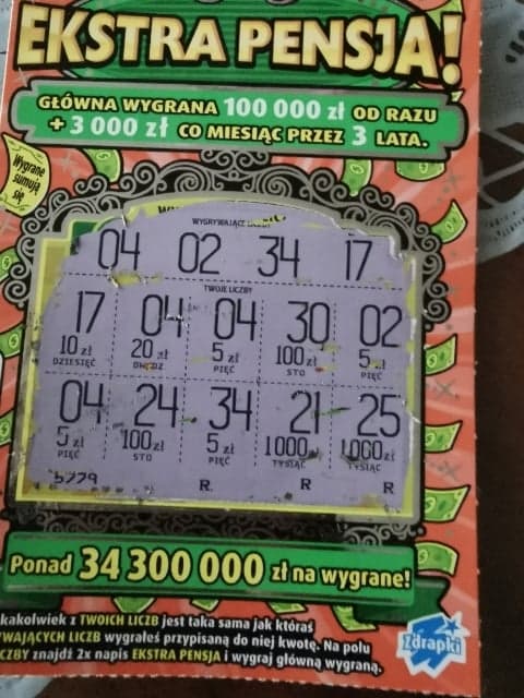 Mama wzięła dla odmiany Ekstra Pensję i trafiła 50zł (nr 23), wymieniła na jeszcze dwie sztuki - z tej samej kolektury było jeszcze 5zł, a z innej 20zł też w numerze 23.