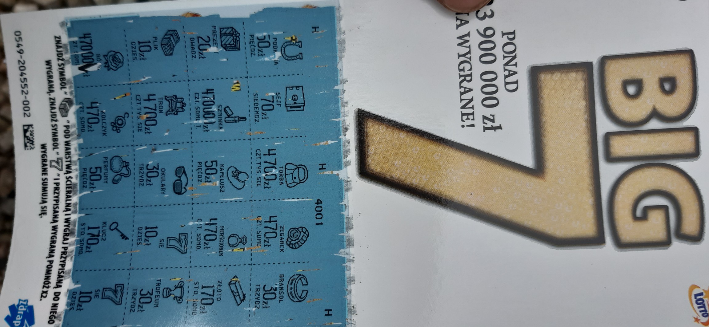 Pustaki w nr 015 i 018, 20 zł (symbol 7-ki) w nr 022 i 30 zł (dycha pod 7-ką i pod banknotami) w nr 003