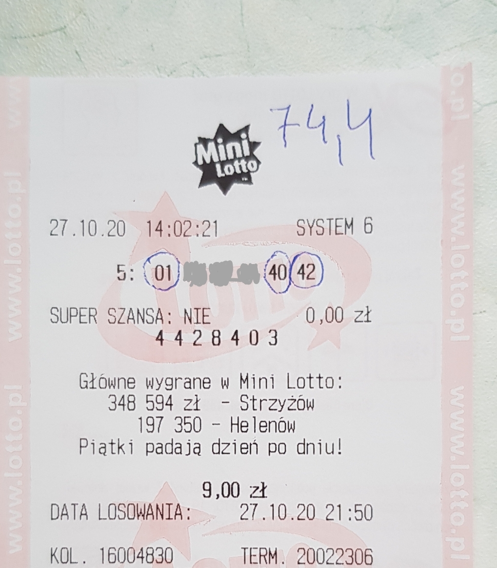 Od kilku dni próbuję szczęścia w Mini grając 1 zakładem systemowym na 6 skreśleń. Dziś po raz pierwszy wpadła trójka (CT), która przyniosła fajną wygraną w wysokości 163,80 zł