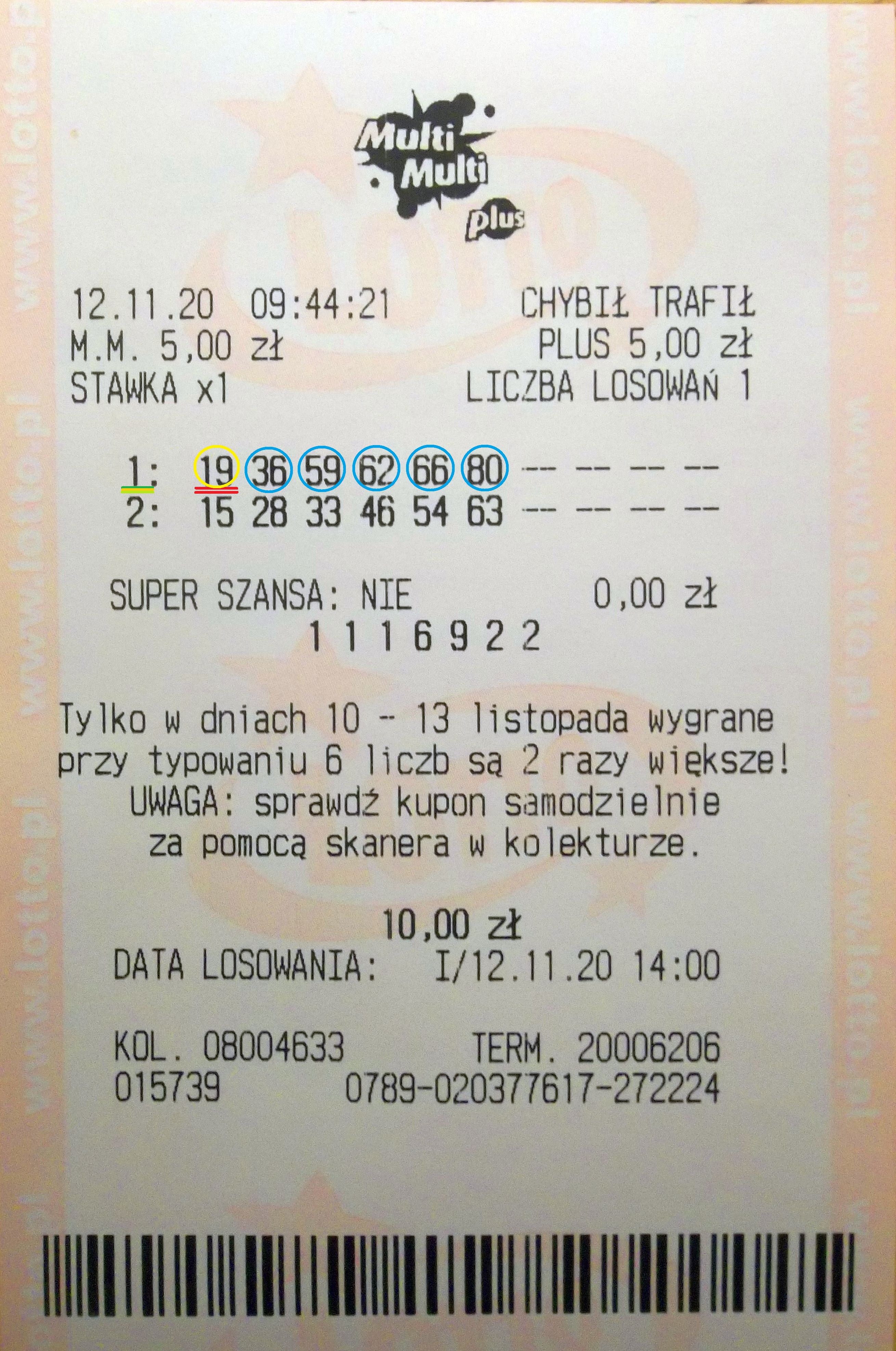 4/6 miałem wczoraj tak to faktycznie samo 3/6. Chociaż w losowaniu o 14 na 4 zakłady miałem 3 x 3/6
