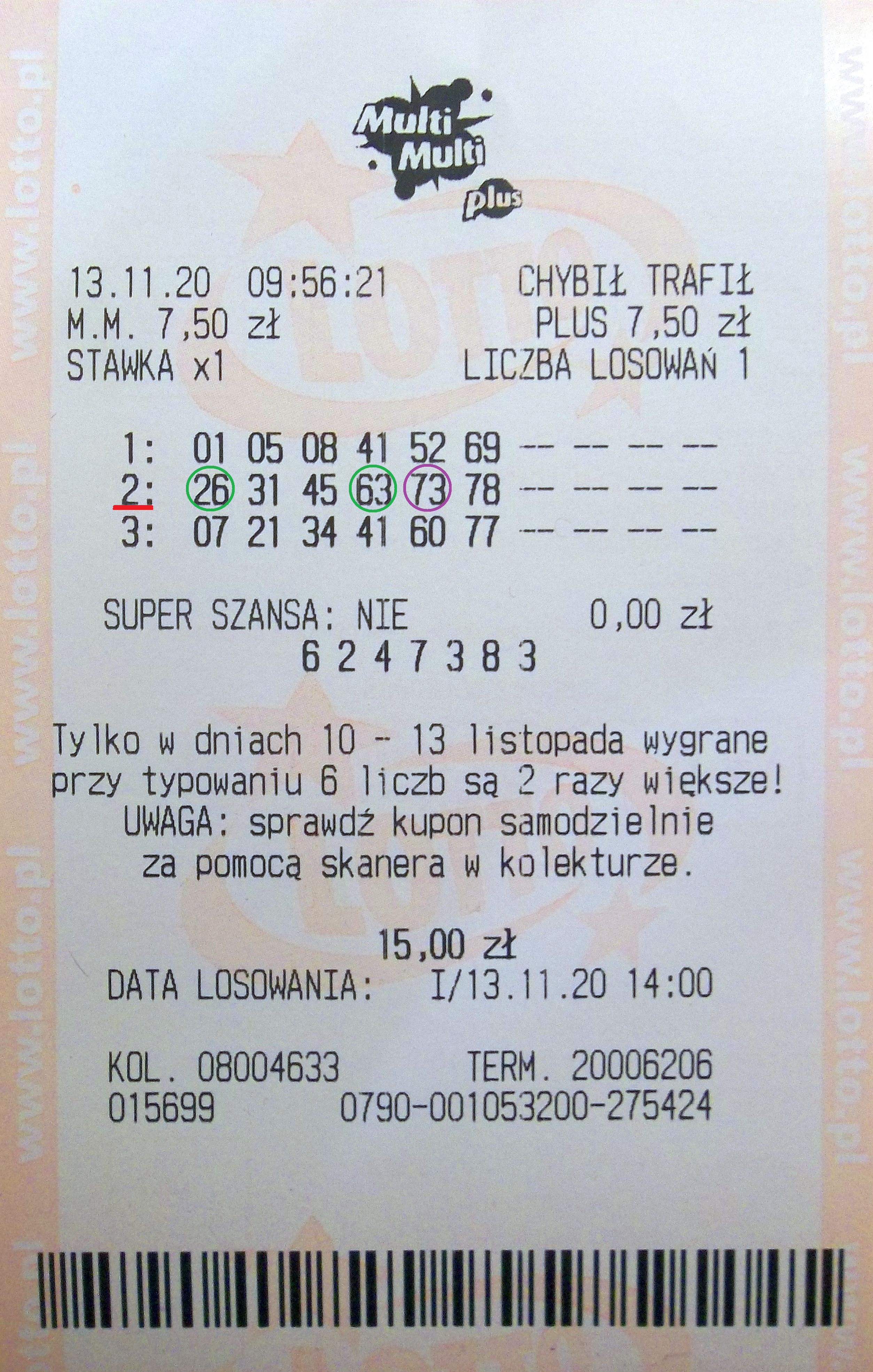 No i bilans z 7 losowań 1 zakładem z plusem to całe 4 zł....