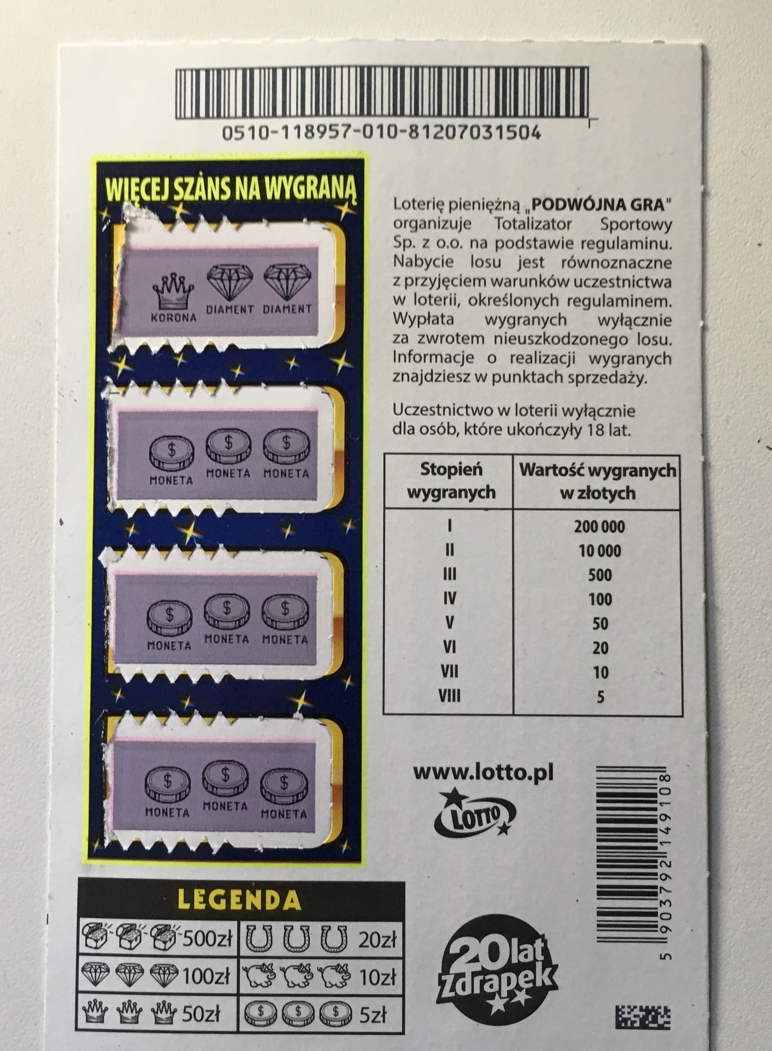 Słuchajcie Pani w kolekturze stwierdziła, że to końcówka tej zdrapki i dużo do wygrania. Proszę o weryfikacje zorientowanych, dzięki
