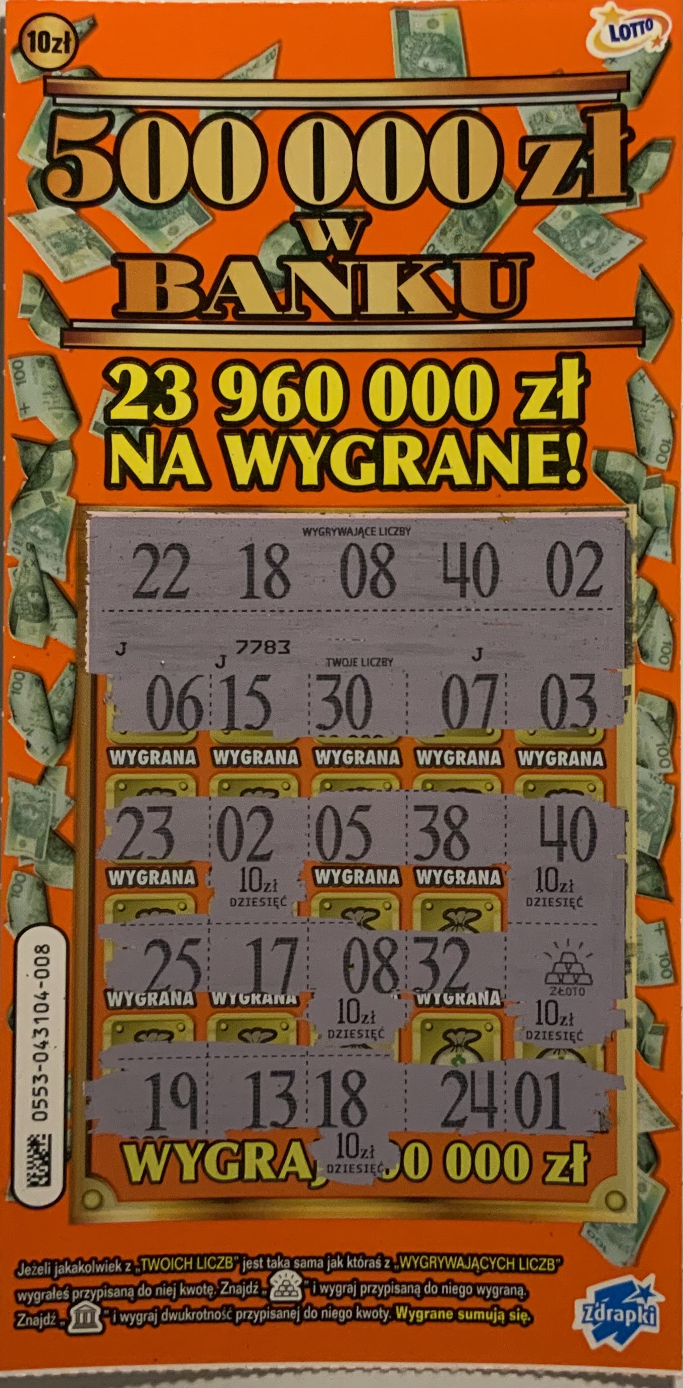 Z braku innych możliwości wzięłam wczoraj w zdrapkomacie jedną sztukę bankowej