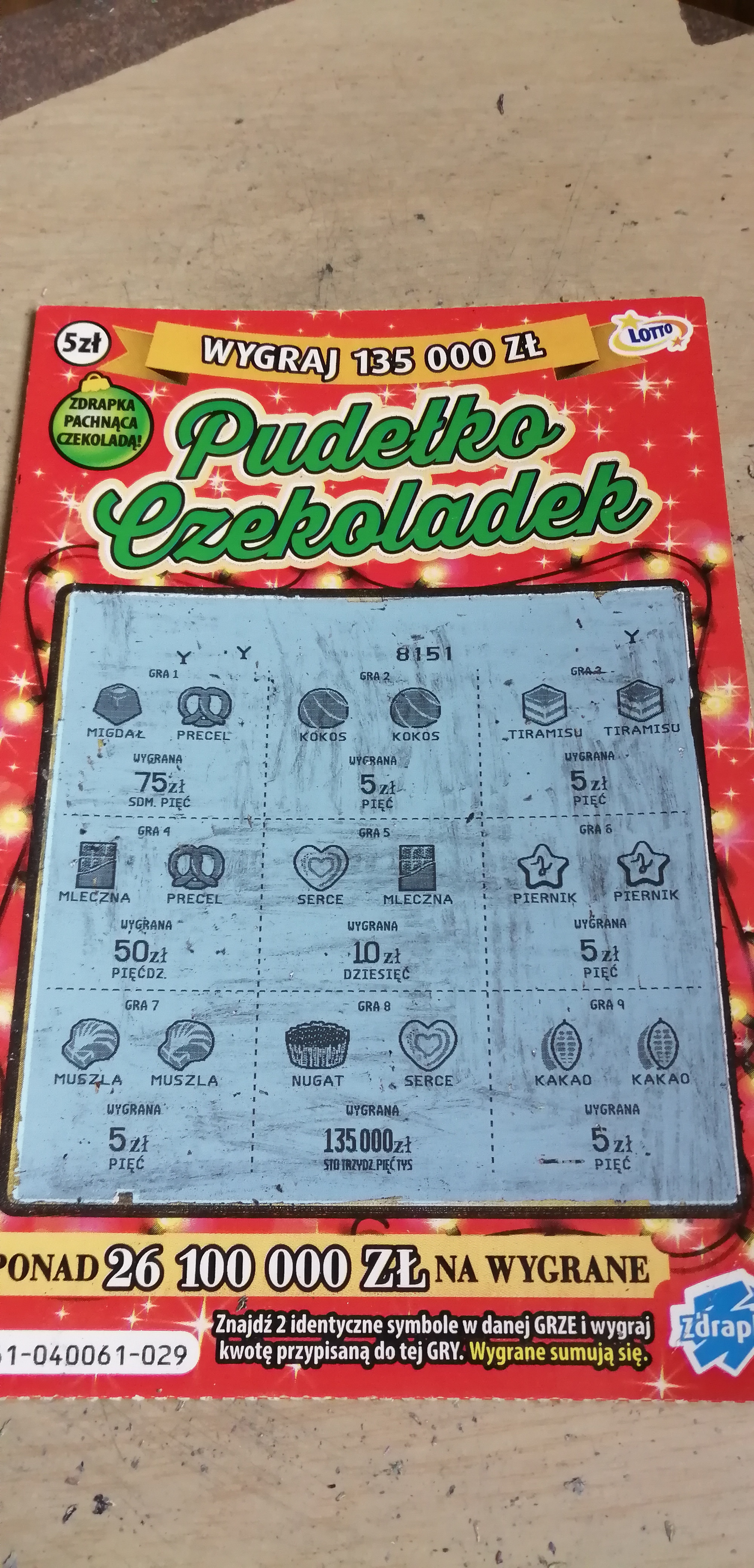 Ale się nadrapałeś aby to wyczyścić. Ja to tylko zwroty w tej zdrapce miałem. Gratuluję.