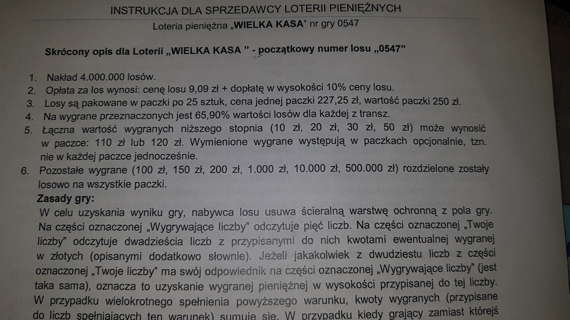 Aha i trzeba mieć wszystkie losy z paczki do reklamacji, te przegrane też.
