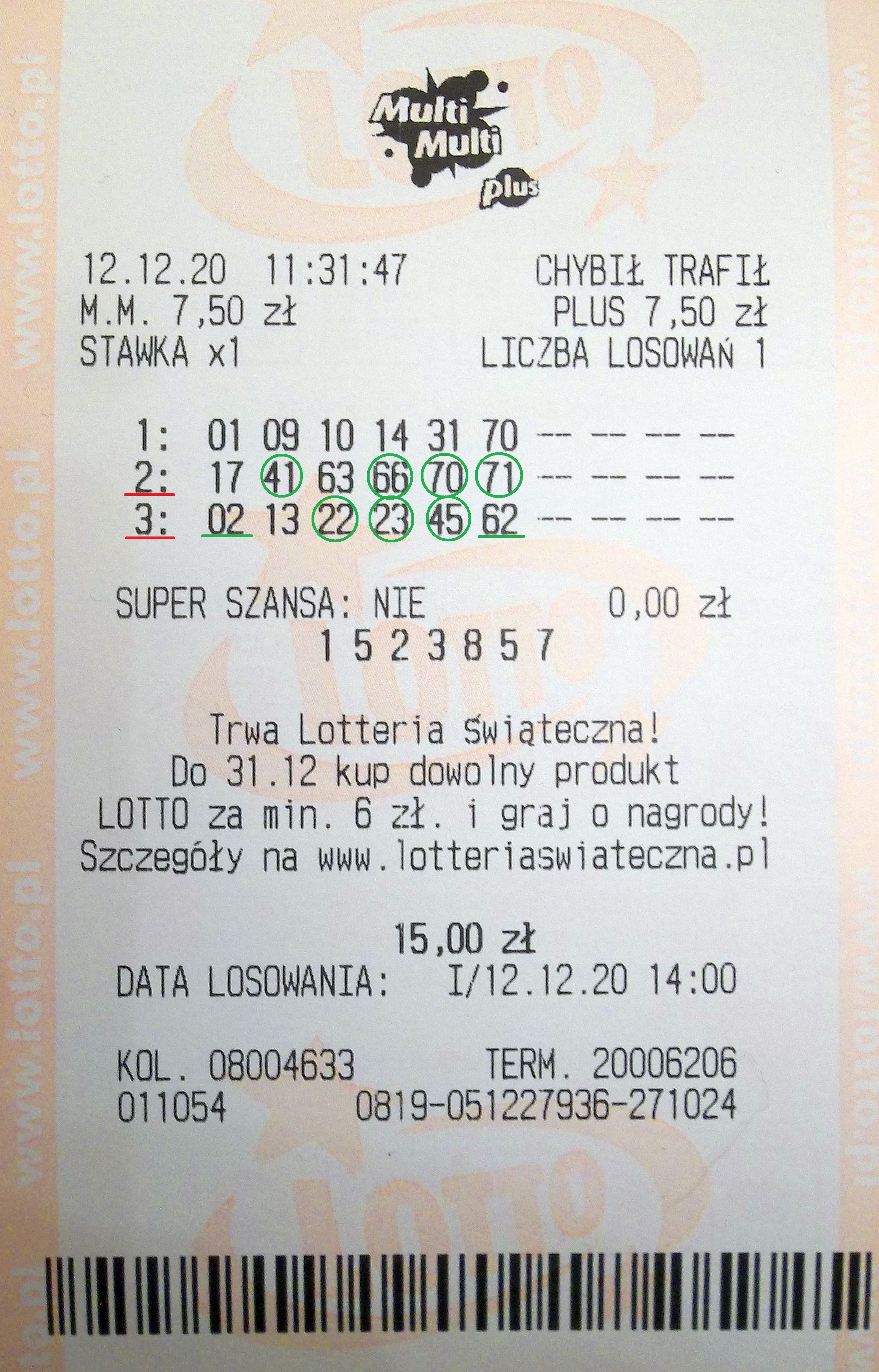 Dodano po 1 minucie 30 sekundach:LubieTo pisze: ↑17 gru 2020, 17:18Ja ale na 2 zakłady okrągłe 0:)roberthajto pisze: ↑17 gru 2020, 17:14Gra ktoś na obecne promo. Ja delikatnie na jeden zakład bez plusa i wlazlo 5/8 . 3 dyszki