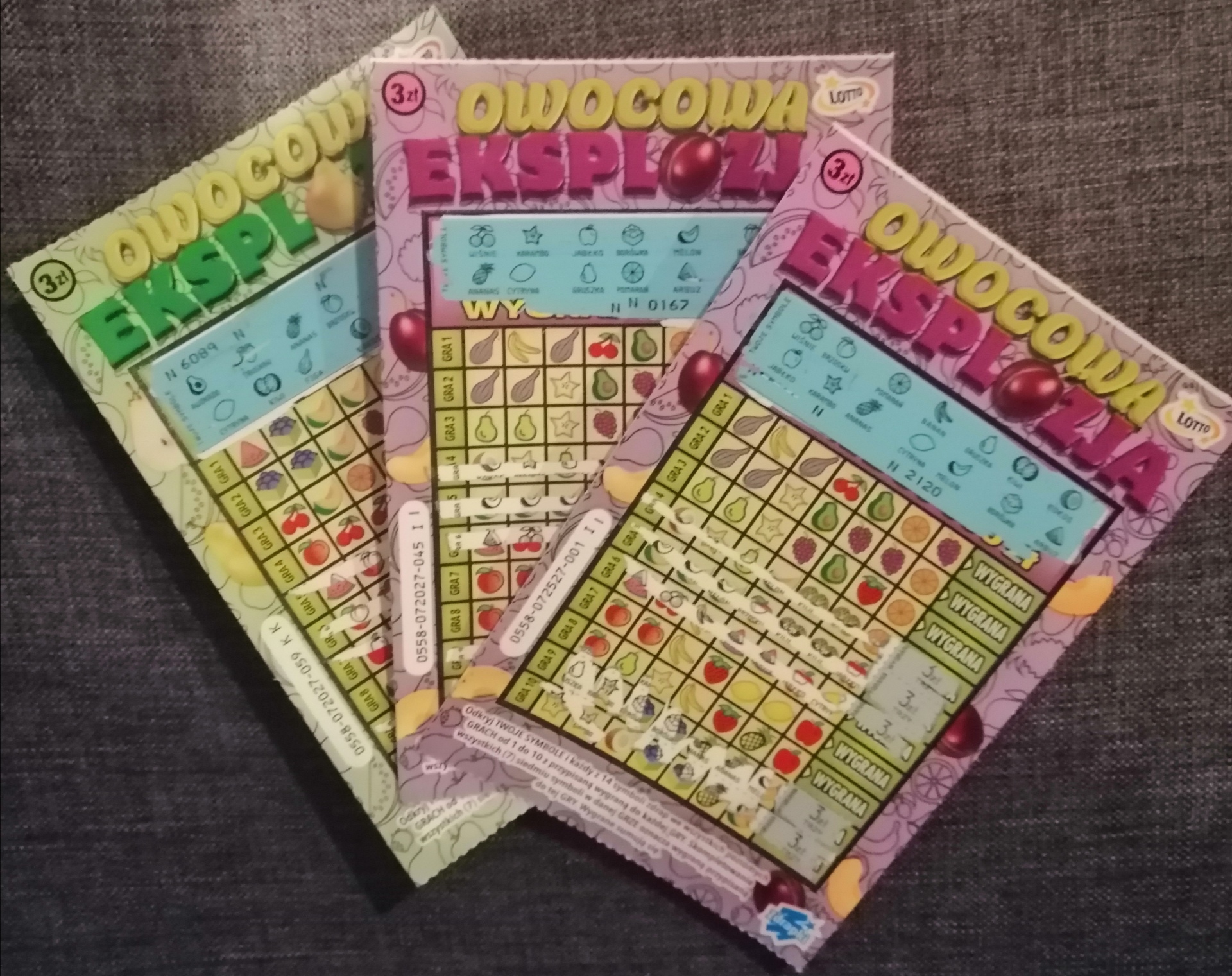 Zakupiłem 7 sztuk od 24 do 30 i wygrane były w 24, 26 i 27. 2x 3 zł i 1x 6 zł. Szału nie ma, ale minus nie jest wielki
