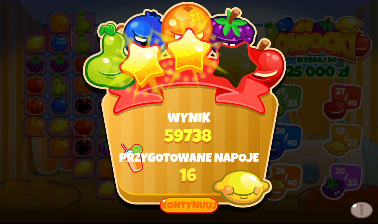 1. Owocki - niezła schiza, takie przekładanie owoców, góra, dół, bok i robienie soków, im więcej zrobisz soków tym więcej kwot losujesz z tych soków i jak masz 3 identyczne to wygrywasz