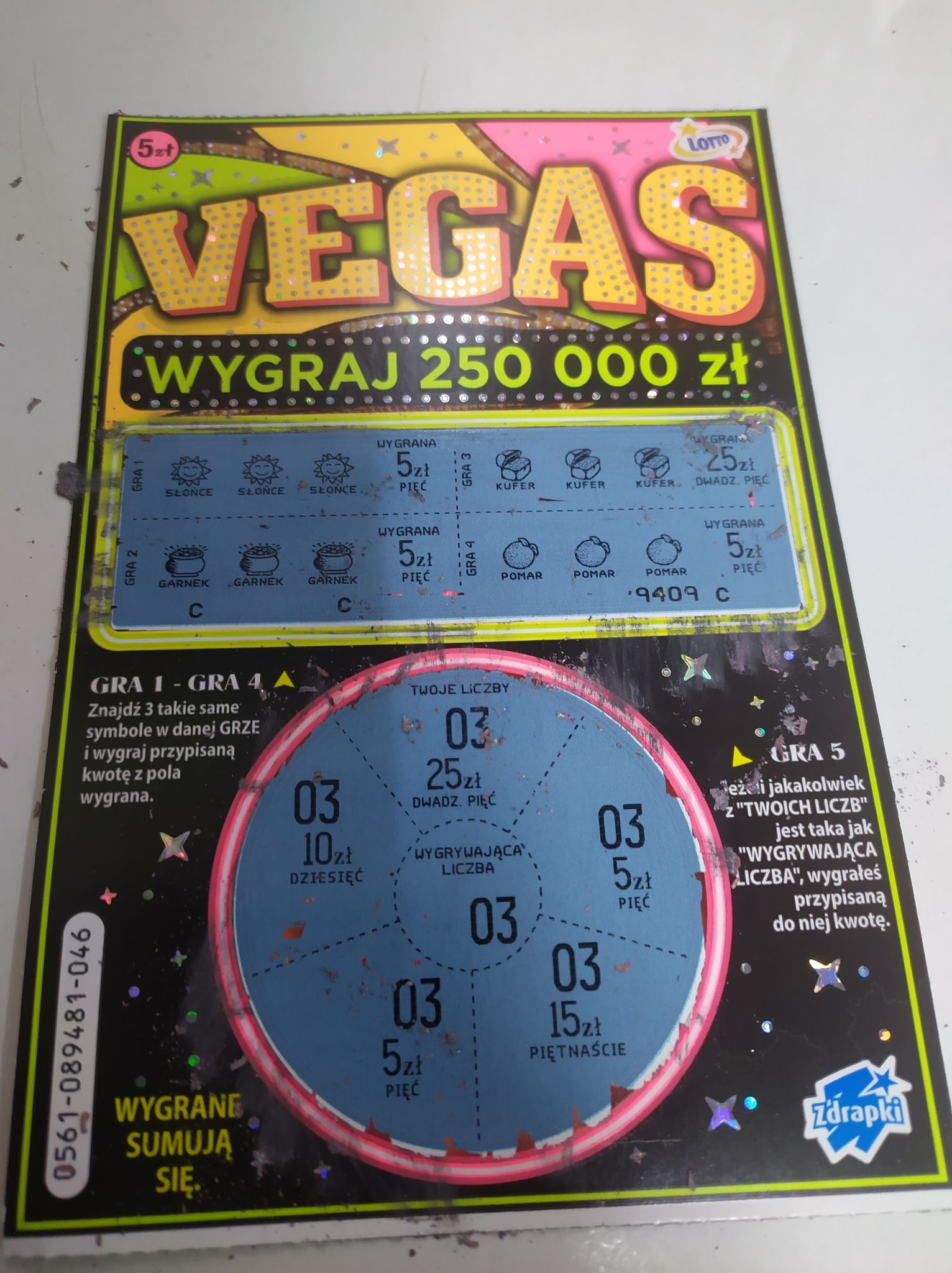No w tej zdrapce stówki i dwusetki powinny się ładnie sypać, gratulacje dla kolegi