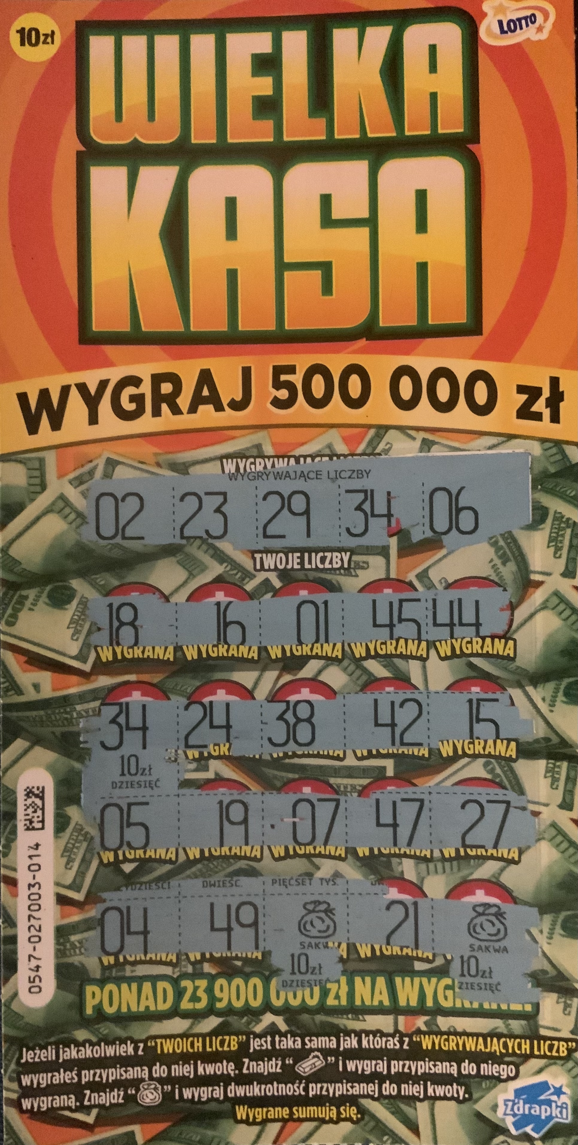 Dziękuję. Ale od miesiąca codziennie po 8 lub 10 zakładów Mini Lotto i kompletne ZERO