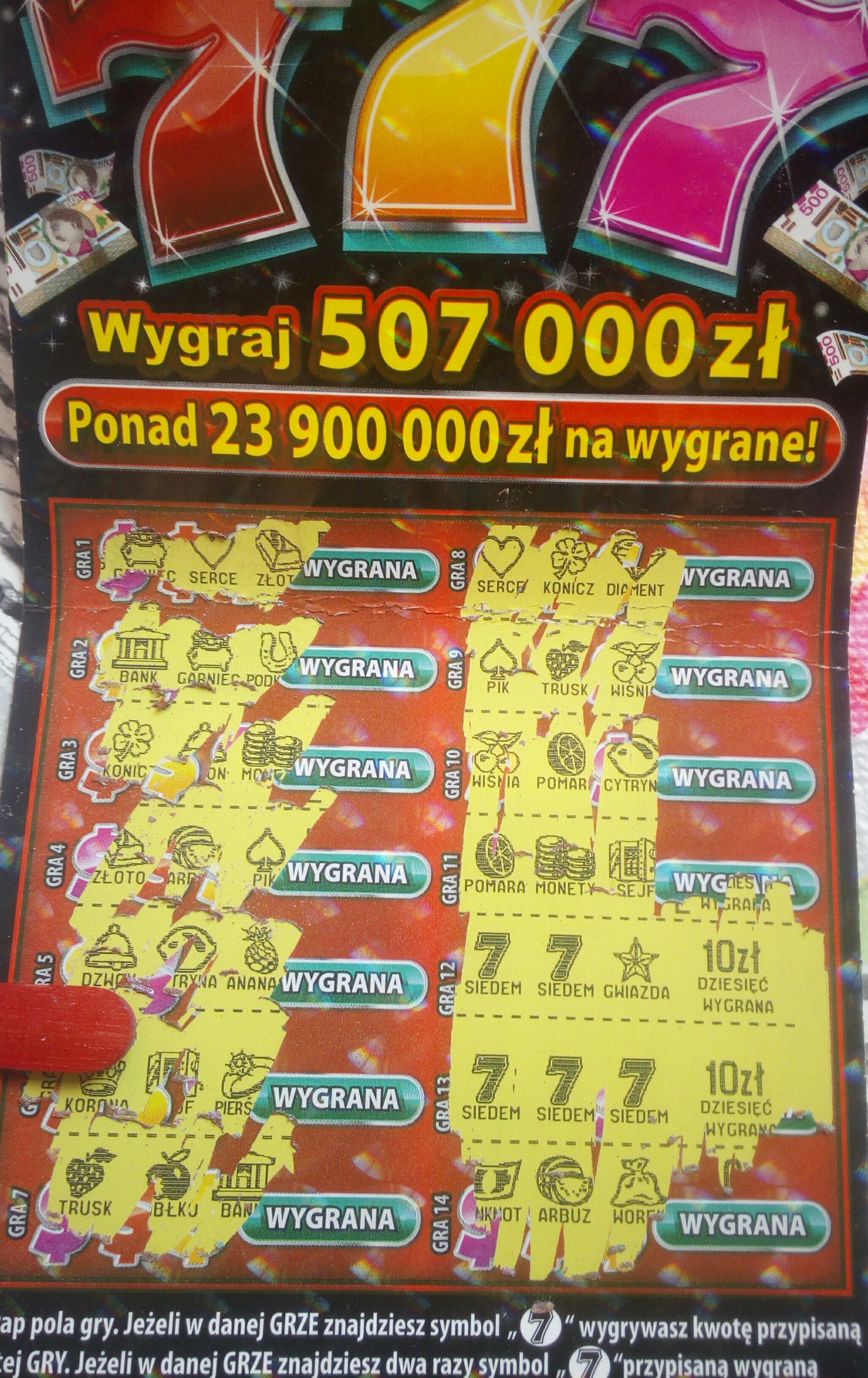 Wziąłem jedną sztukę, trafiłem 20zł. Generalnie nie przepadam za tą serią zdrapek