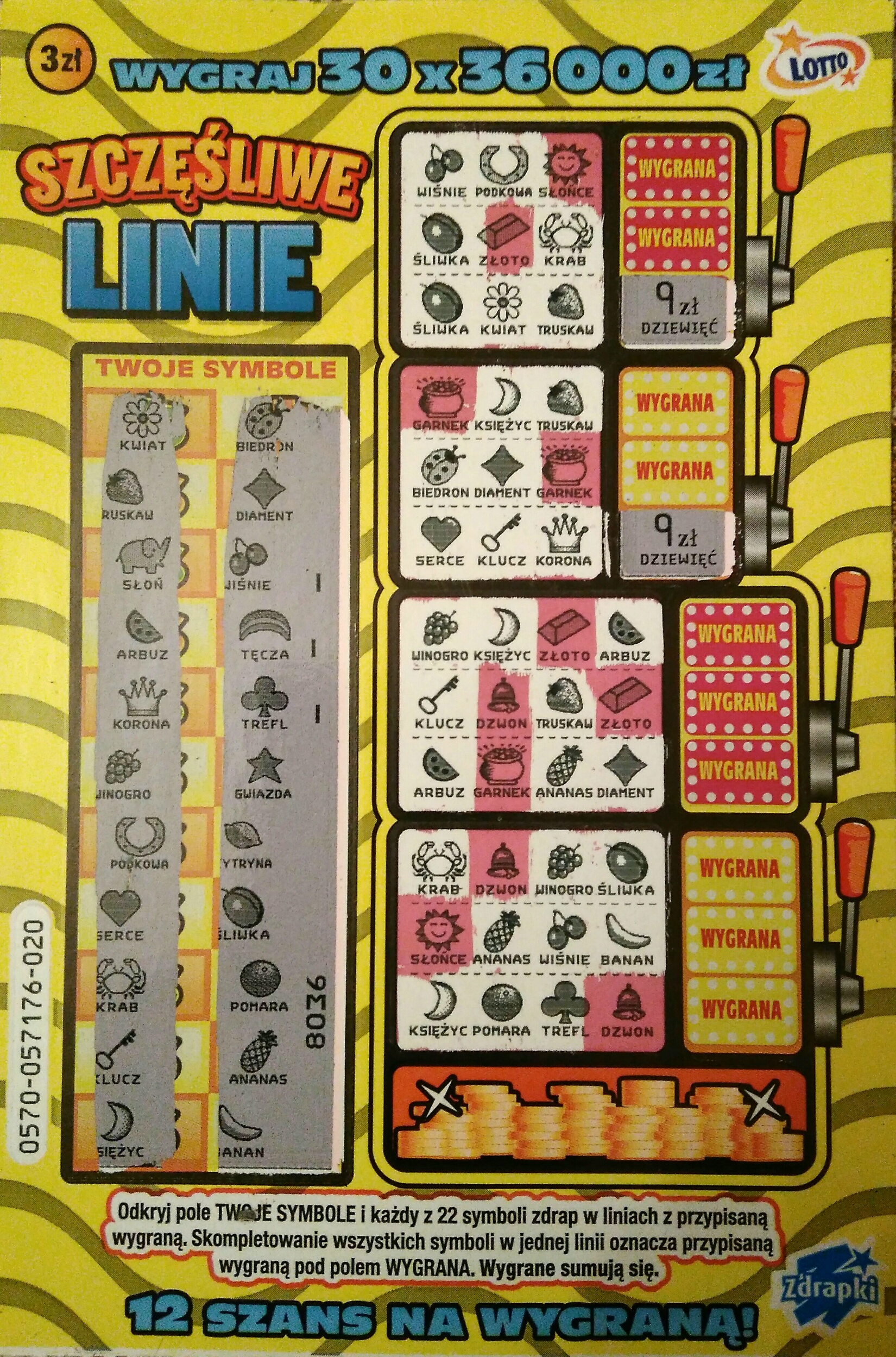 Szczęśliwe linie są dosyć popularne i na tyle ludzi co je drapie u nas na forum to chyba od 2015 łącznie było tylko z 7-8 wygranych po 360zł. Słabiutko!