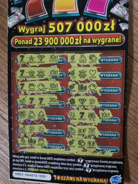wczoraj z wachlarza zdrapek wybrałem 3szt,wynik to w 1szt było 20zł, a w drugiej taki okaz