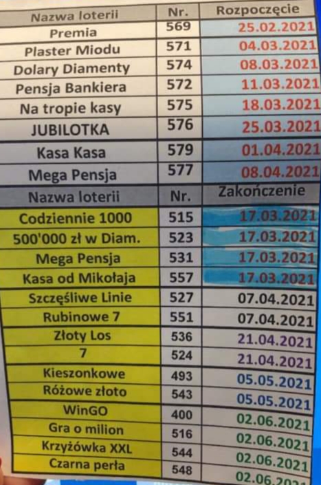 Re: Rozpoczęcie/zakończenie sprzedaży zdrapek [Przybyło - ubyło]