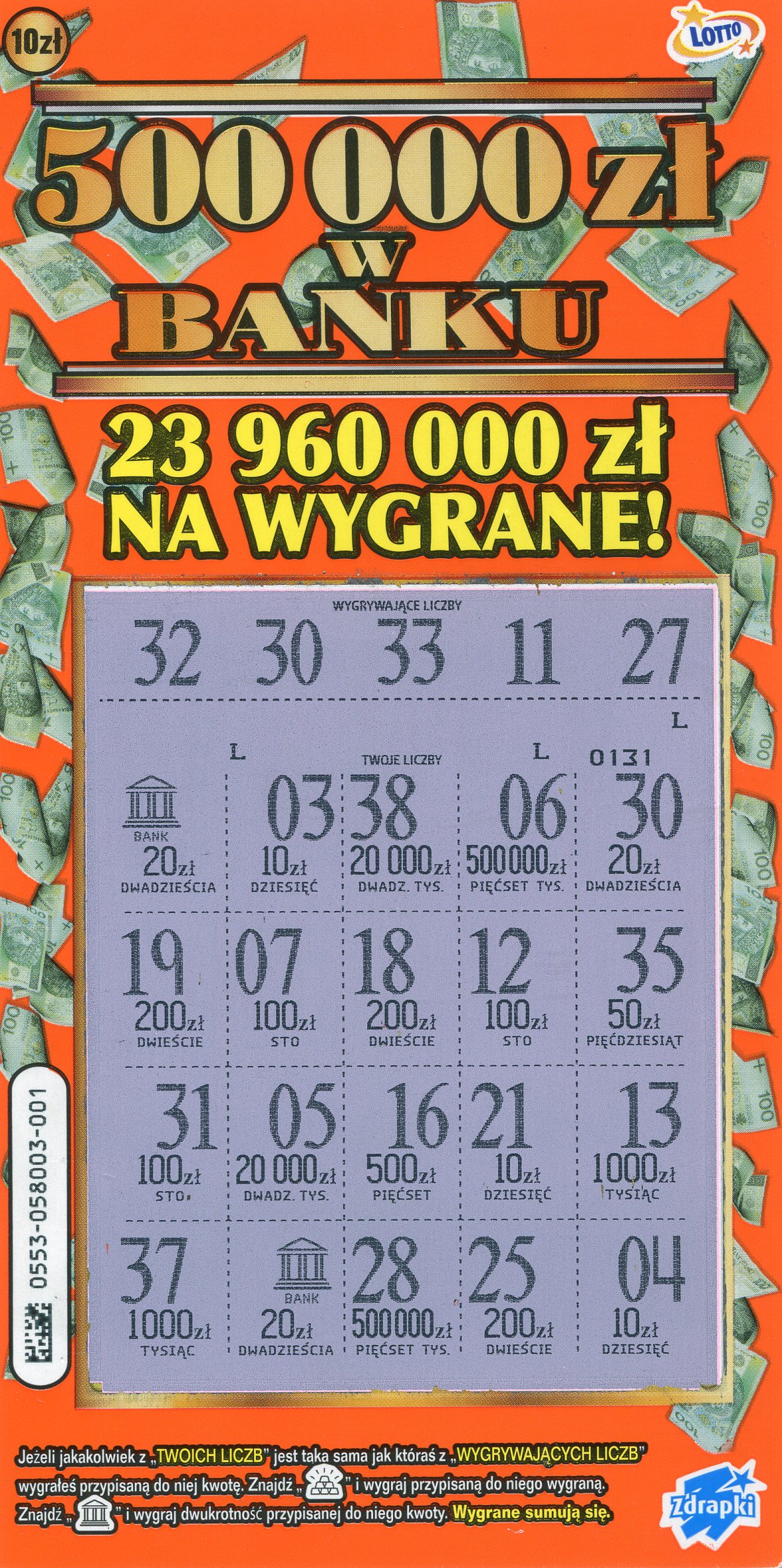 U mnie ta edycja słabsza, ale i rzadko jakoś tę zdrapę biorę. Przedwczoraj przy jednej sztuce 20 zł, dziś przy jednej także 20 zł. Czekam na 100