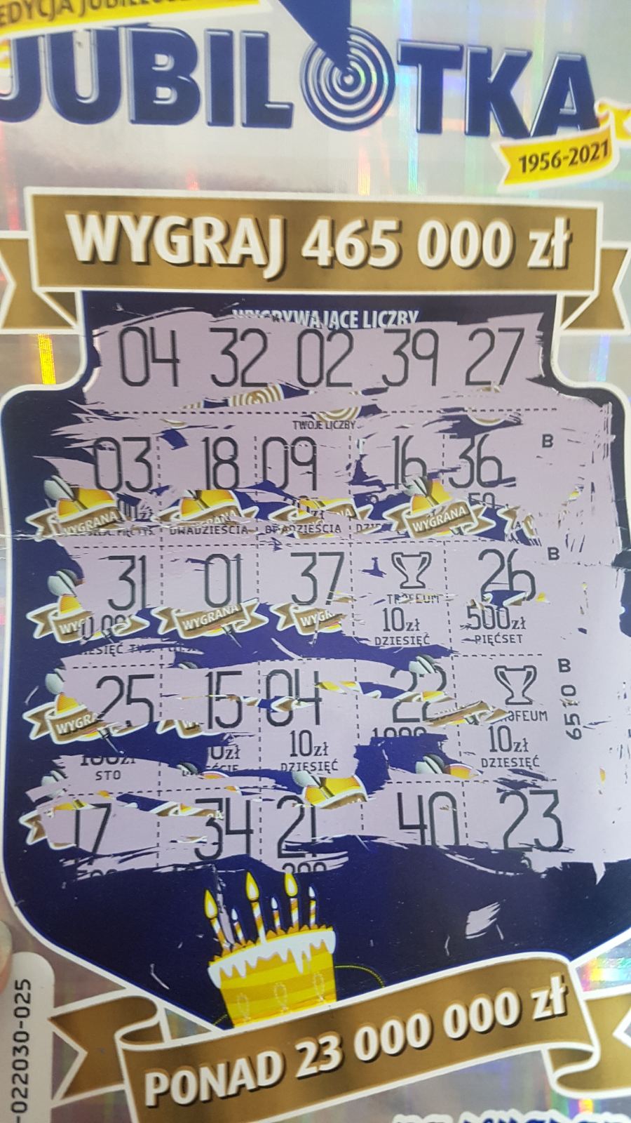 Brawo ! U mnie wczoraj z jednej paczki nr 1 i nr 2 pustaki. Dziś w jednym miejscu nr 11 zwrot, zaś nr 22 w innej kolekturze pustak. Ale drapie się mega.