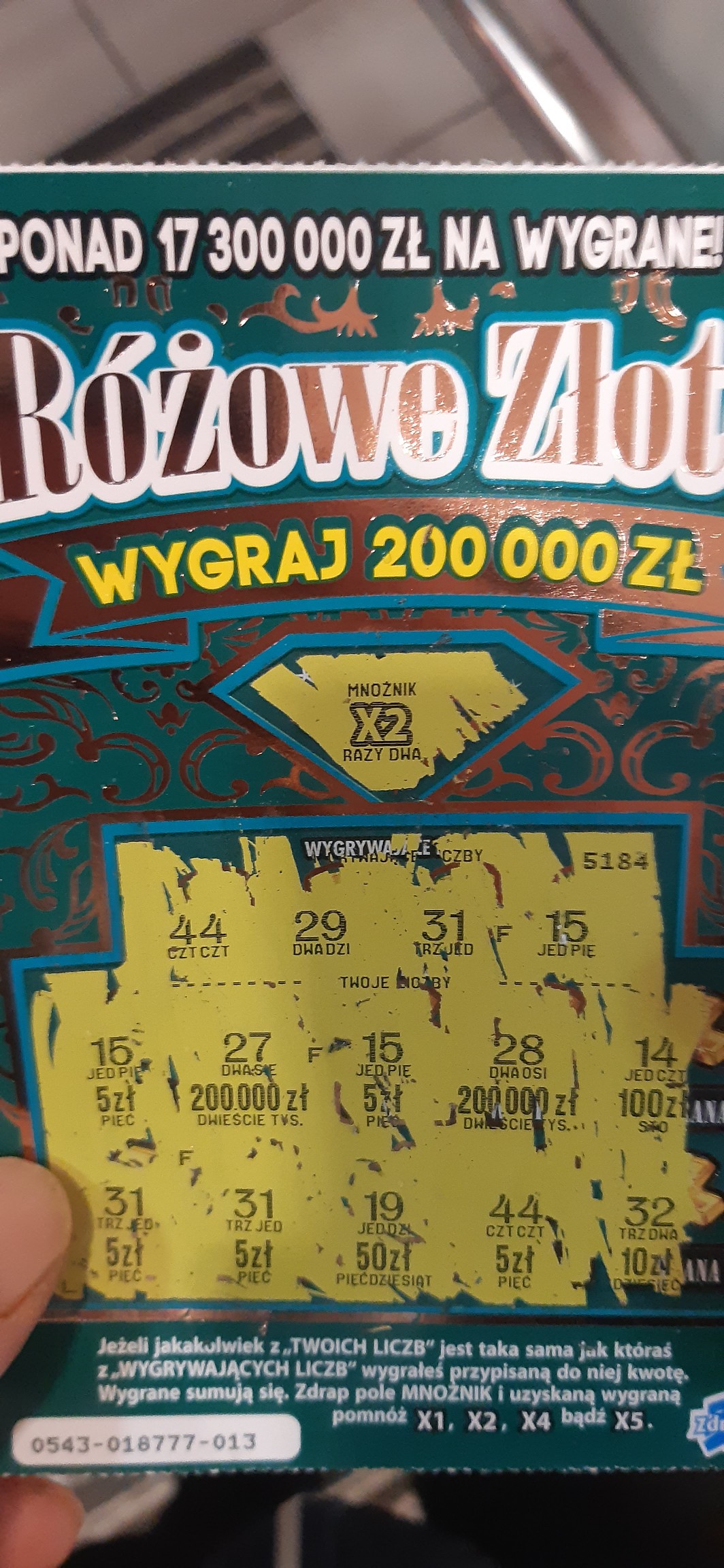 Dzisiaj kupiłam moją drugą zdrapkę Różowego złota i 20 zł wydrapałam. Chyba muszę się przerzucić z linii i krzyżówek na inne zdrapki żeby coś zacząć wygrywać bo tak to ciągle na minusie.