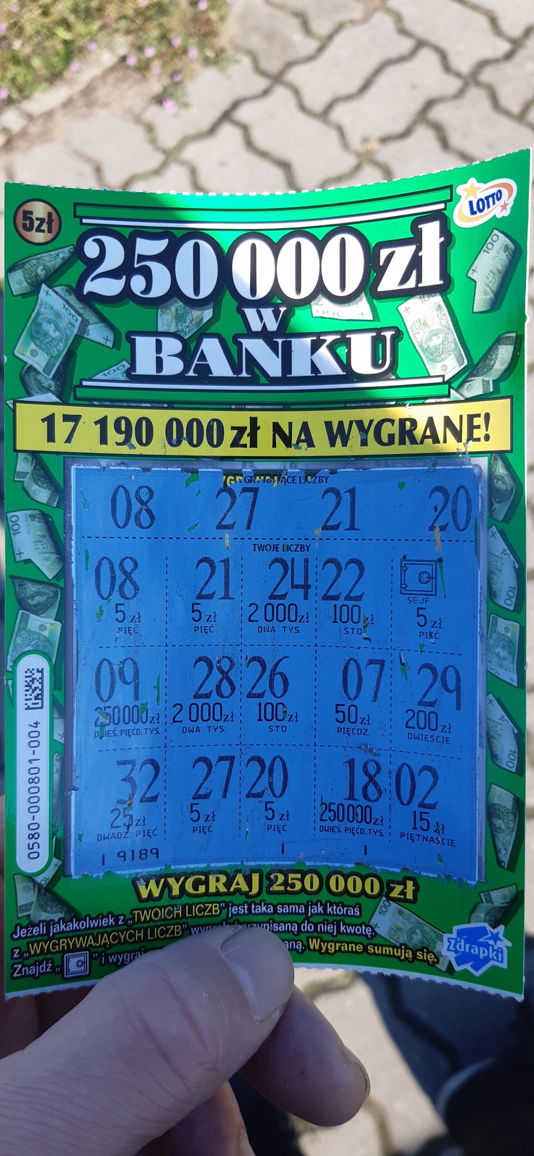 I co jak kiedyś napisałem ze zdrapkę tà za 5 zł gdzie wygrana 20 tys Będzie 2 lata to nikt nie wierzył chodzi o kocham zdrapki a już ponad 2 lata wtedy jechałem na piątka do Mediolanu na Milan Lazio i mówiliście ze zejdzie i co
