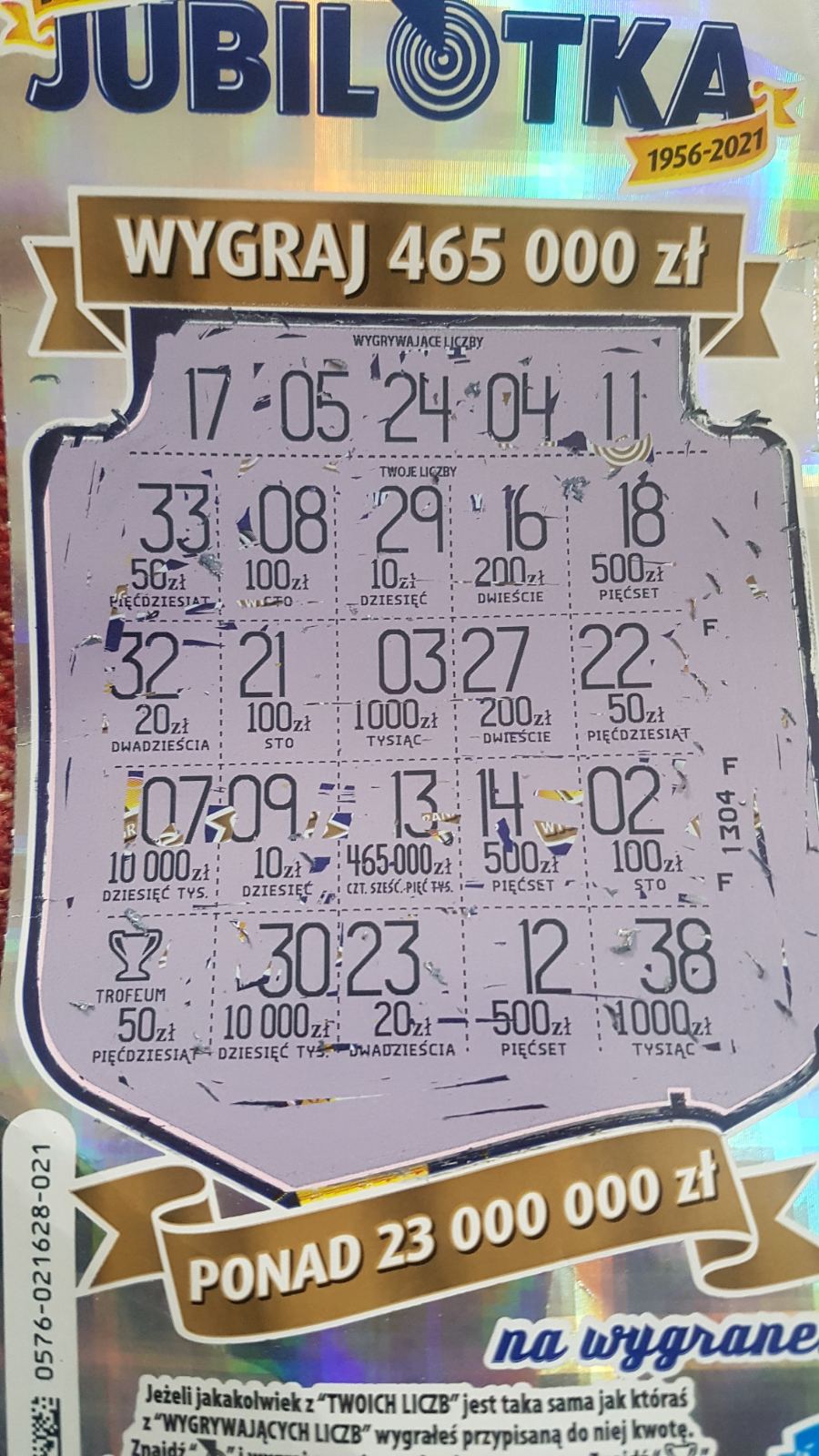 Brawo ! U mnie wczoraj z jednej paczki nr 1 i nr 2 pustaki. Dziś w jednym miejscu nr 11 zwrot, zaś nr 22 w innej kolekturze pustak. Ale drapie się mega.