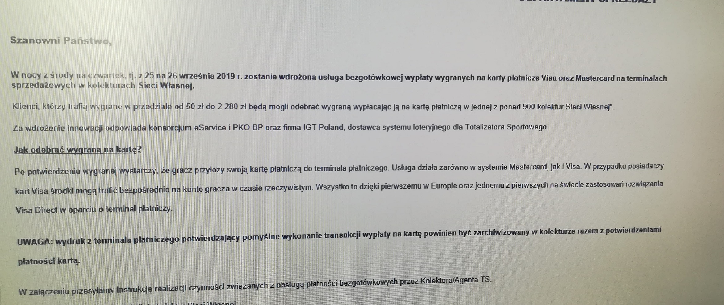 Od jutra możliwość wypłaty wygranych bezpośrednio na konto w wybranych kolekturach (fizycznych i część sieciowych)