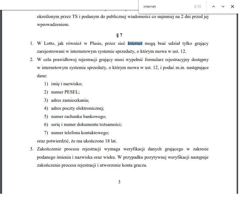 To jest nowy regulamin Lotto obowiązujący od 15.11.2018 roku. Zwróćcie uwagę, że jest tam sporo odnośników do gry internetowej, więc możliwe, że za tydzień niespodziwanie ruszy sprzedaż internetowa