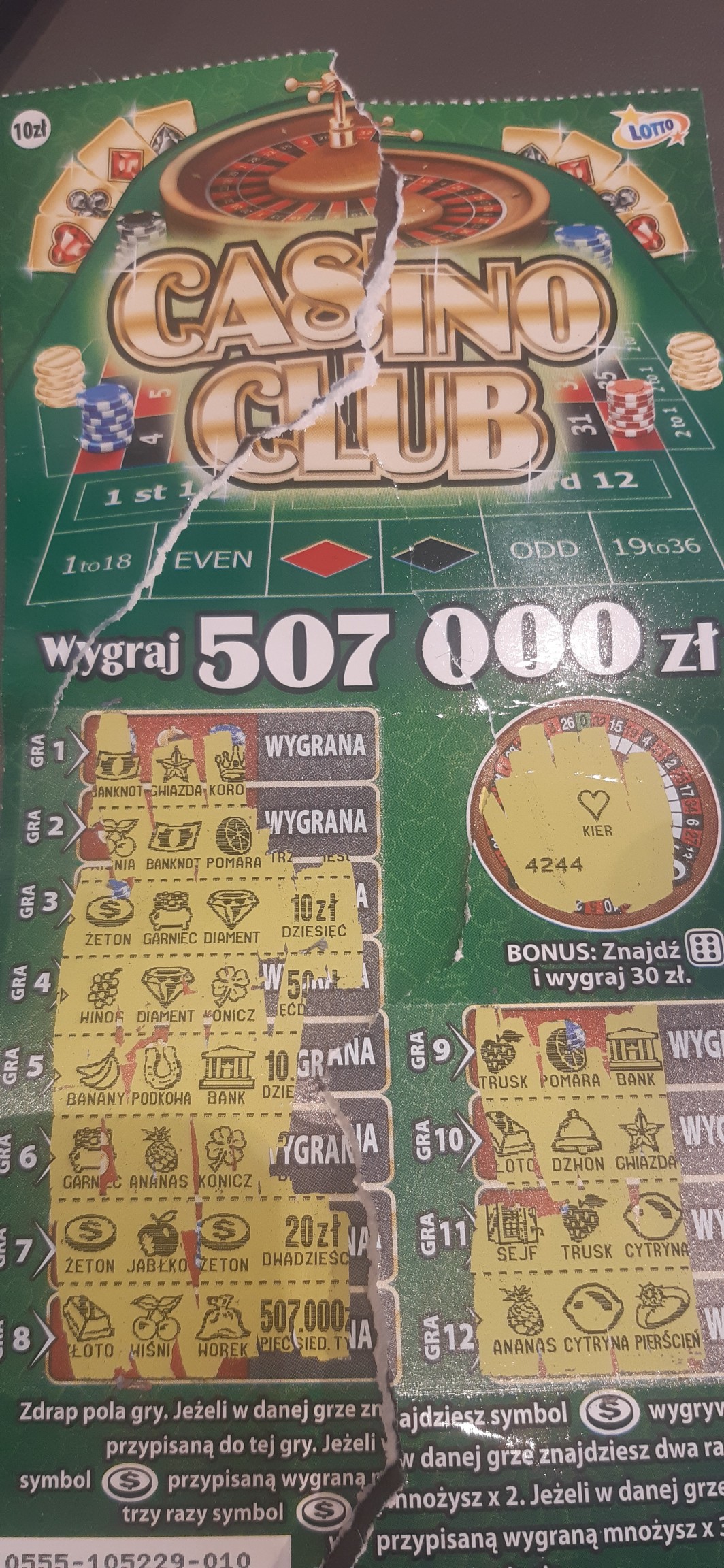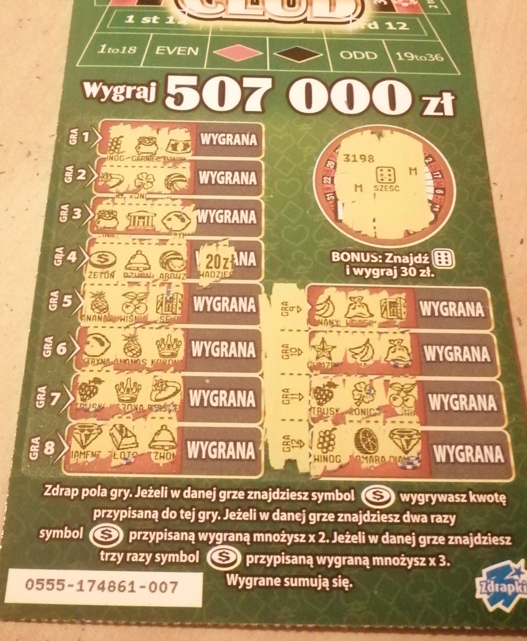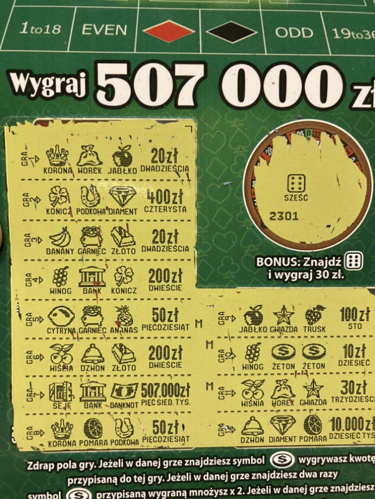 Zdrapa podarta bo myślałem , ze jest 30 i dopiero kolektor przypomniał o mnożniku