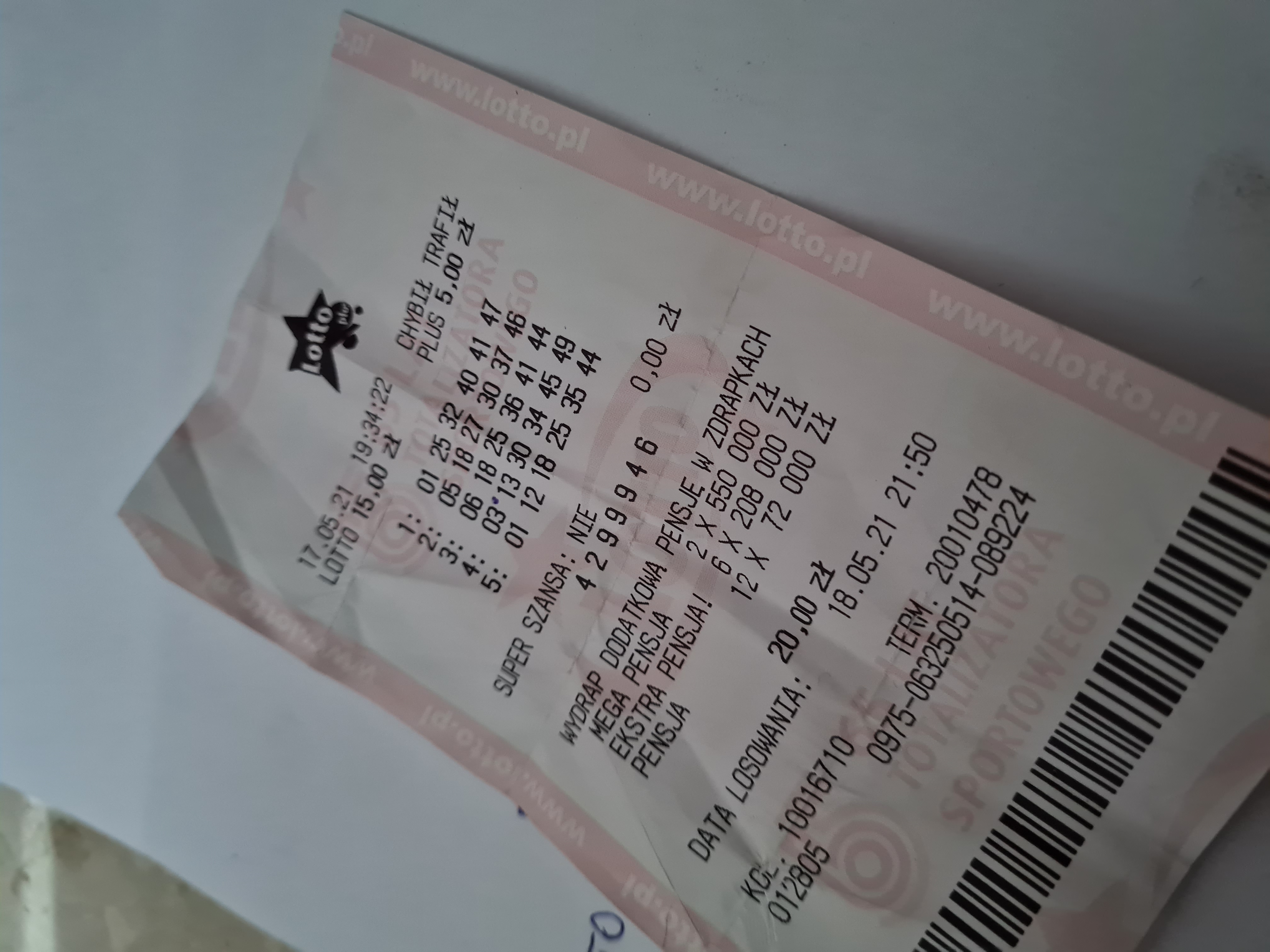 Ja już od dawna nie gram w lotto bez sensu topić, szóstki się nie trafi a pozostałe wygrane są beznadziejne.
