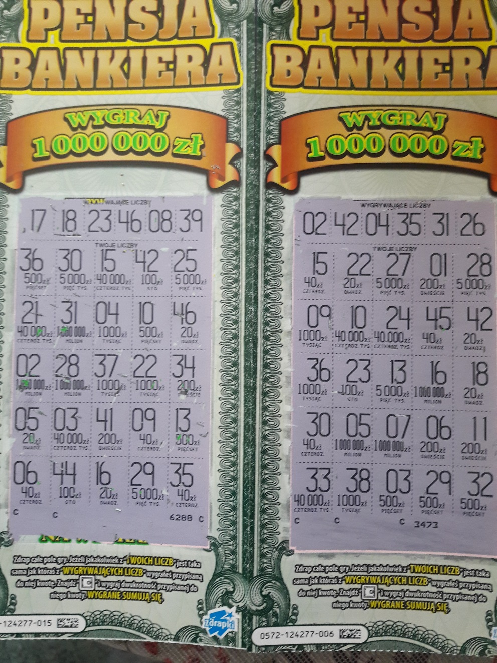 Kupiona paczka dzisiaj. W numerach 3, 5 i 7 zwroty, w numerach 1 i 13 po 40 zł.