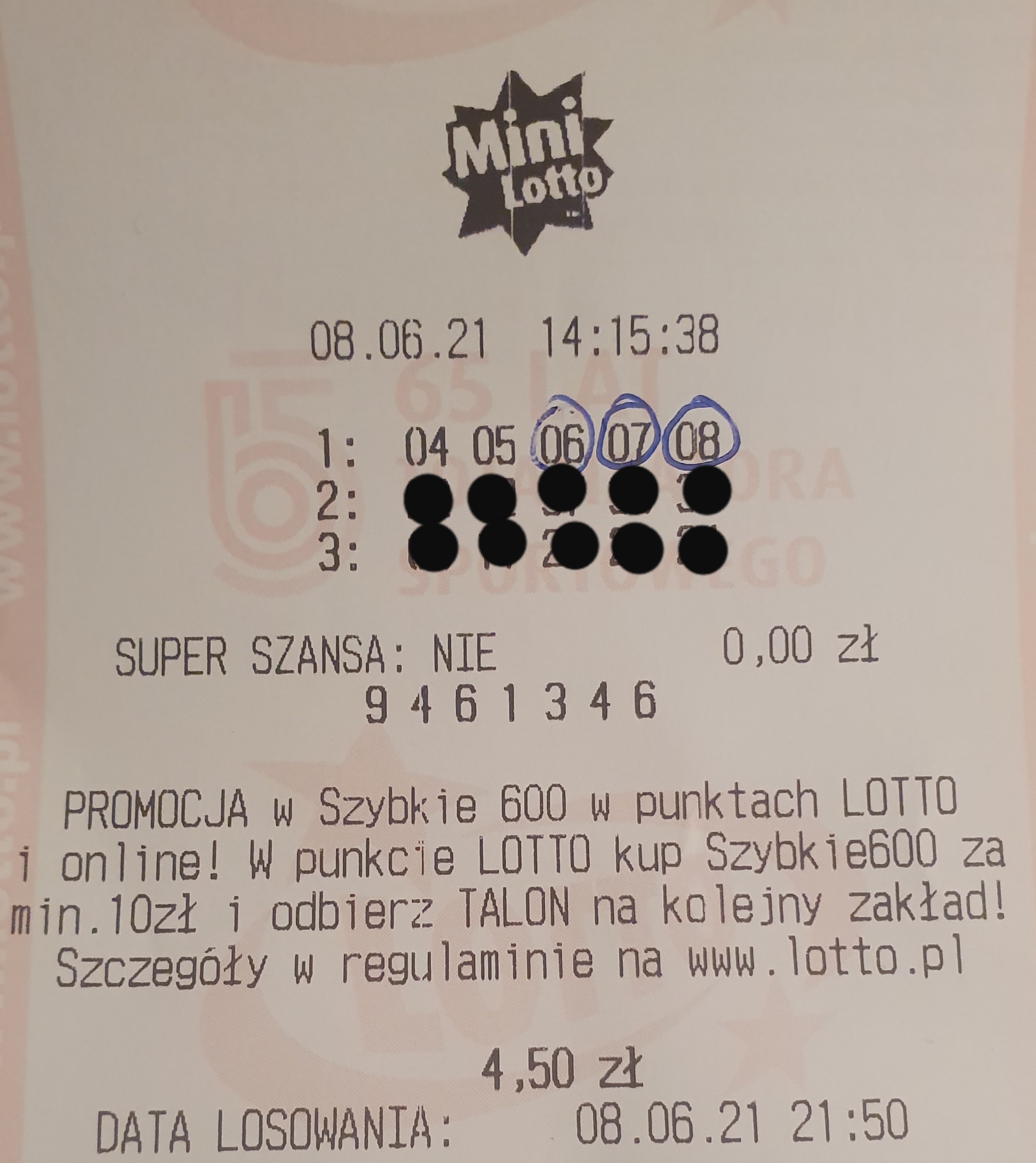 U mnie dzisiaj na 2 zakłady 3/5 WT dobrze płatna, na liczby 6 8 30