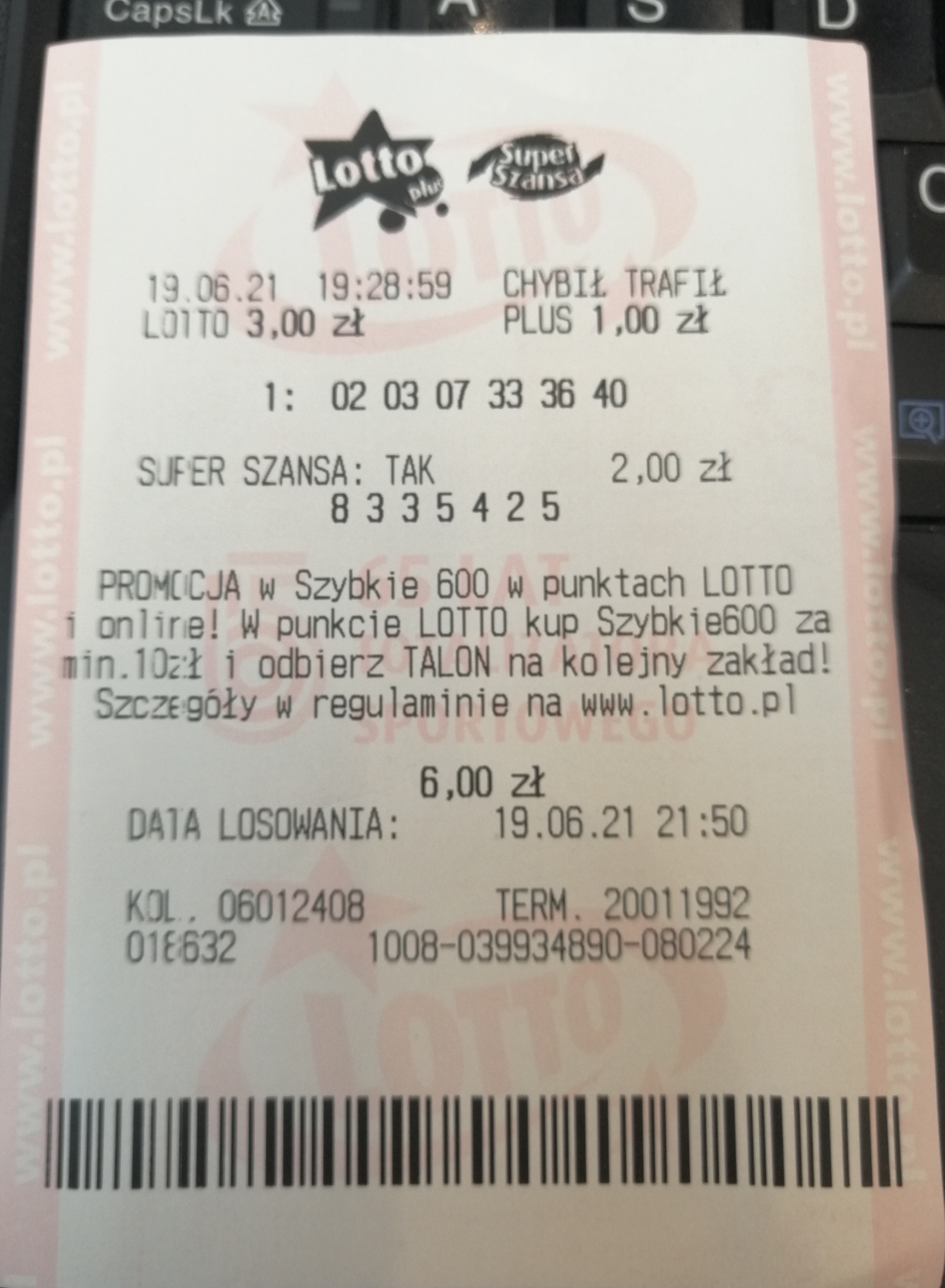 Rzadko gram w Lotto ale chęć przytulenia tylu milionów zwyciężyła