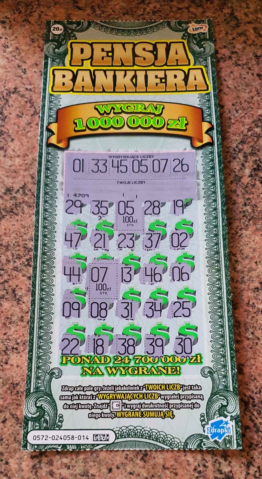 Dostałem info w kolekturze, że padła już główna w tej zdrapce