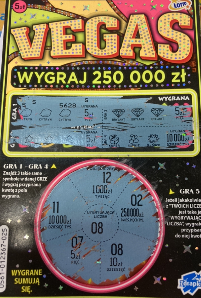 Ale i tak będe ją dobrze wspominał, fajna formuła i nawet co nieco wydrapałem: 2x50zł i 6-7x25zł. Jesli TS zamierza zrobić kolejną edycję tego typu zdrapki to niech zostanie pole z symbolami, a zamiast ruletki z liczbami dadzą pola z kartami i kośćmi tak jak to było w Casino De Luxe.