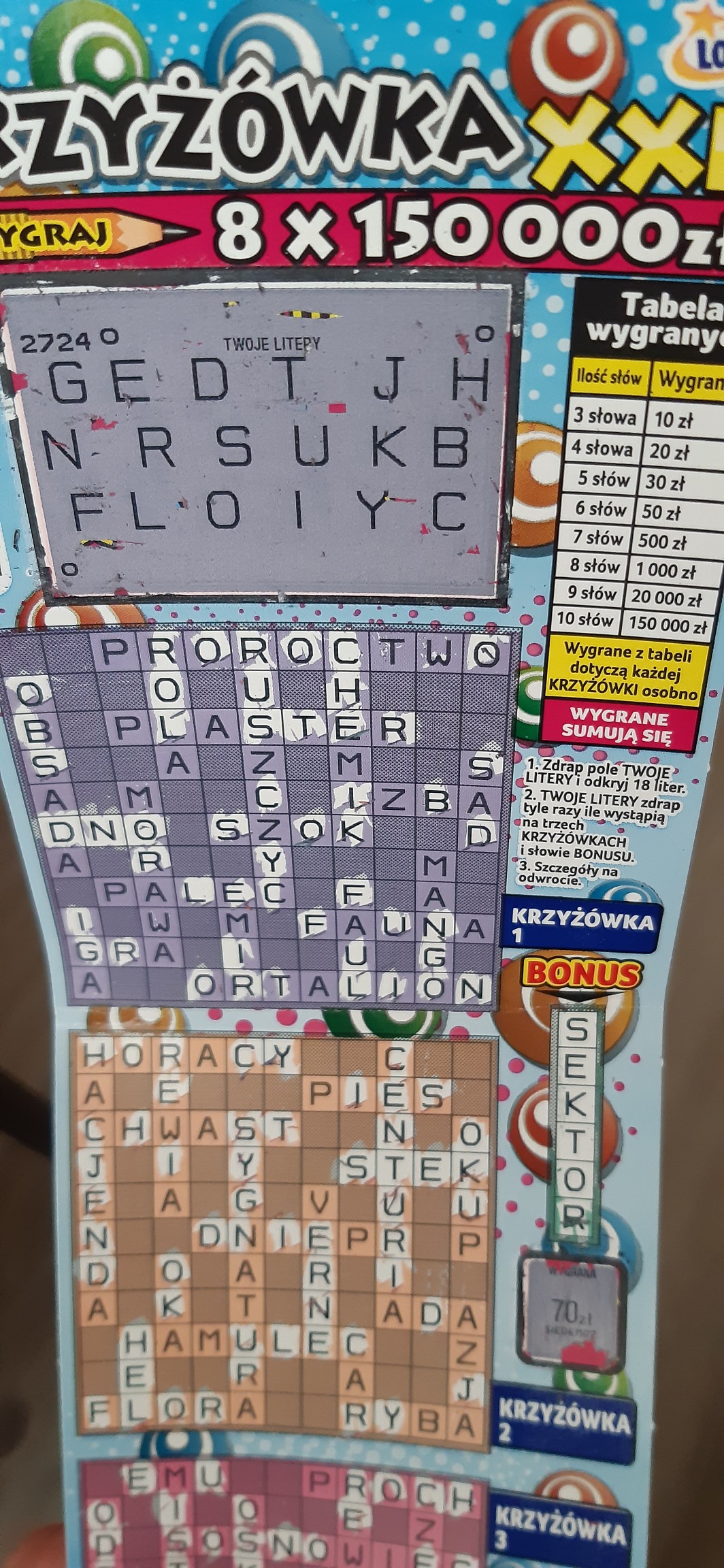 Mam 3 słowa w pierwszej krzyżówce, czyli 10 zł wygrane, a różne litery kontrolne :/ coś pozmieniali...