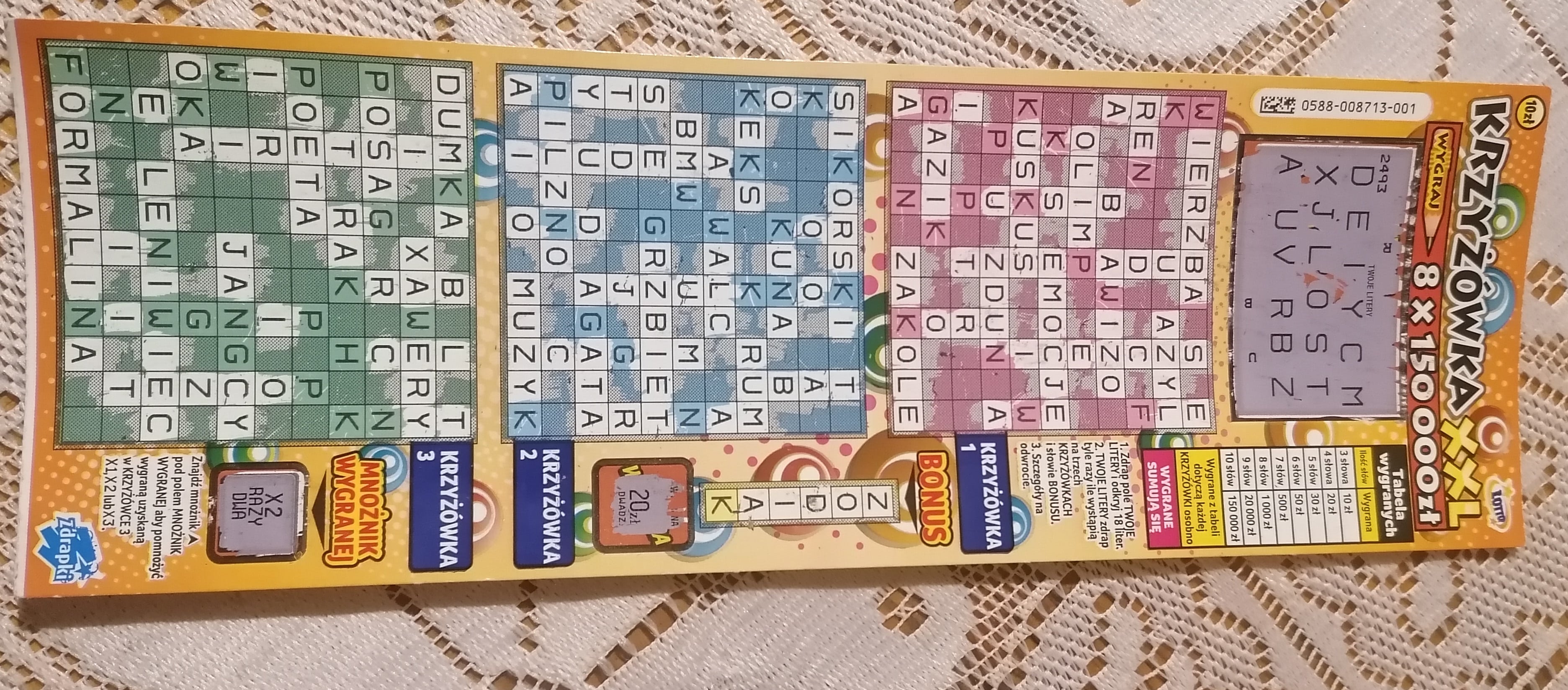 Mam 3 słowa w pierwszej krzyżówce, czyli 10 zł wygrane, a różne litery kontrolne :/ coś pozmieniali...
