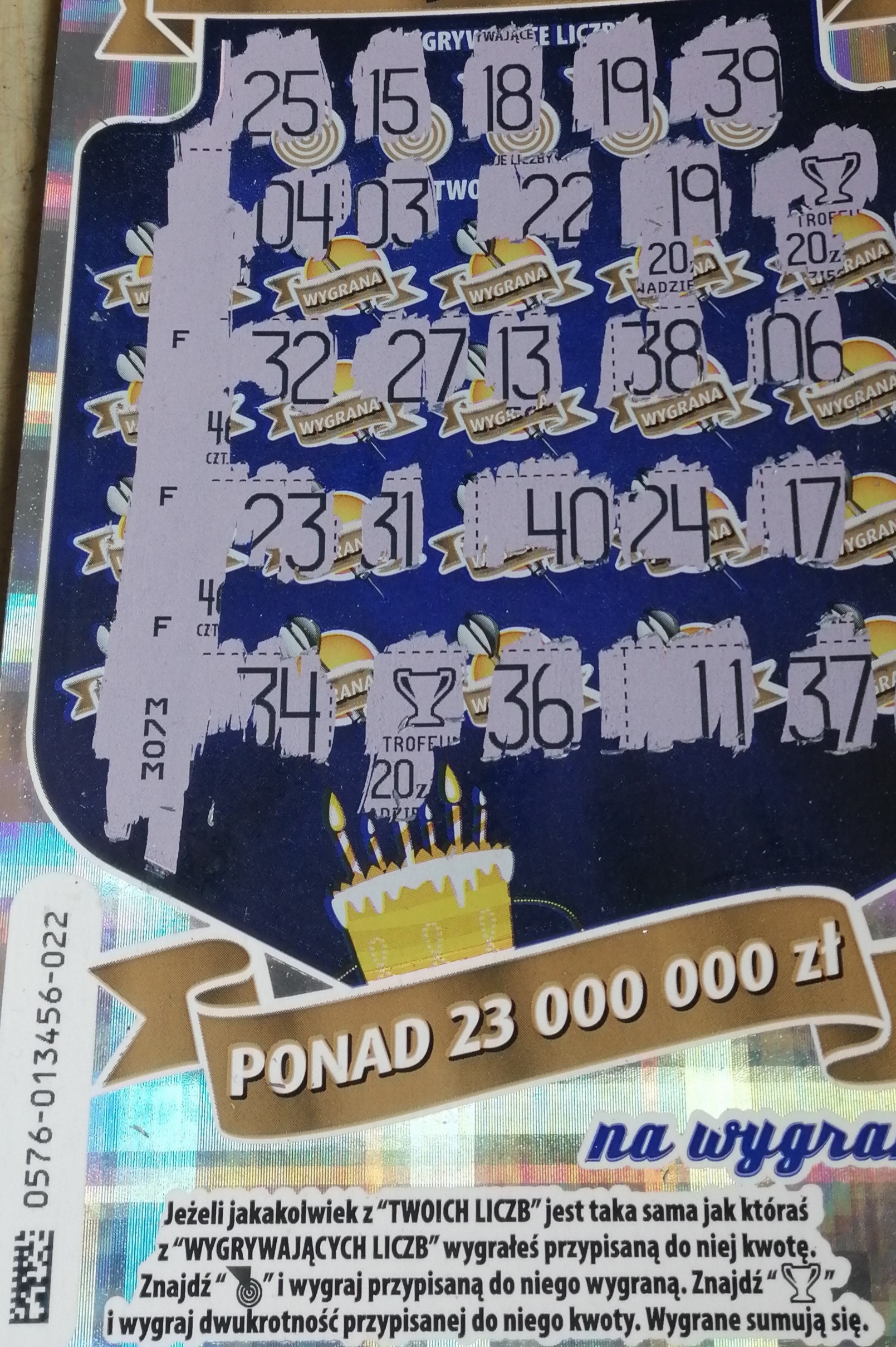 Tak się czasami zastanawiałem czy "wygrywające liczby" w ilości 5 sztuk mogą być wszystkie z jednej "dziesiątki" - i jedna z powyższych zdrapek właśnie mi odpowiedziała na to pytanie