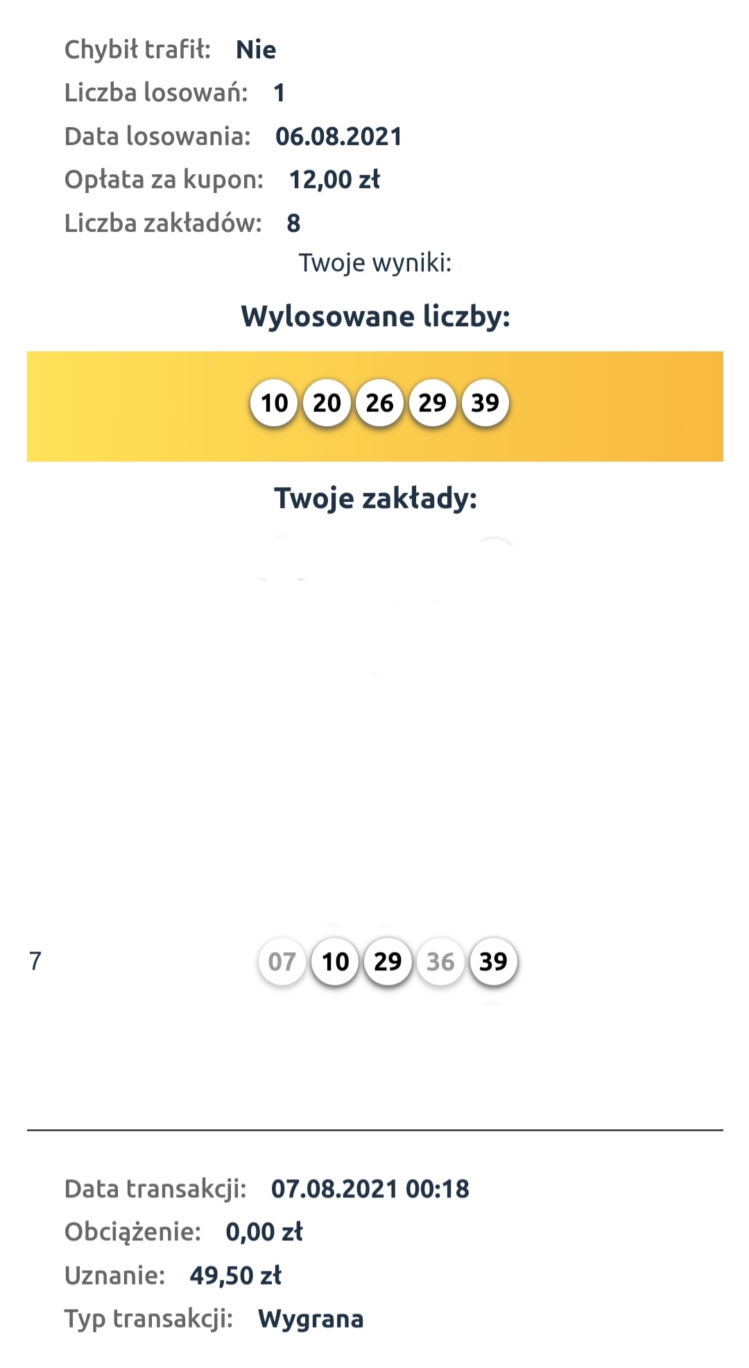Ja wysłałem ostatnio 15 zakładów na 10 losowań, minęły już 4 losowania, a wygranej brak.