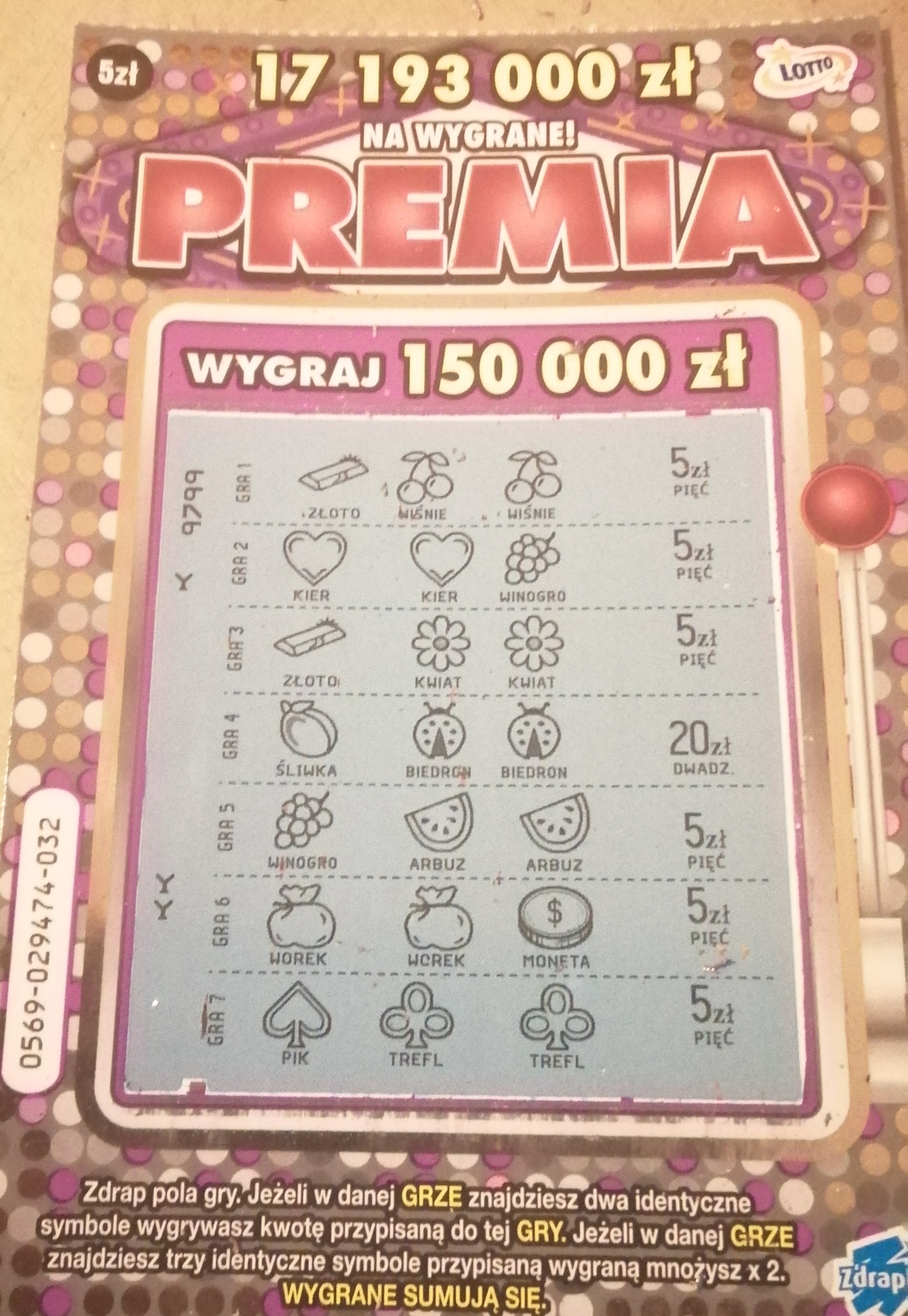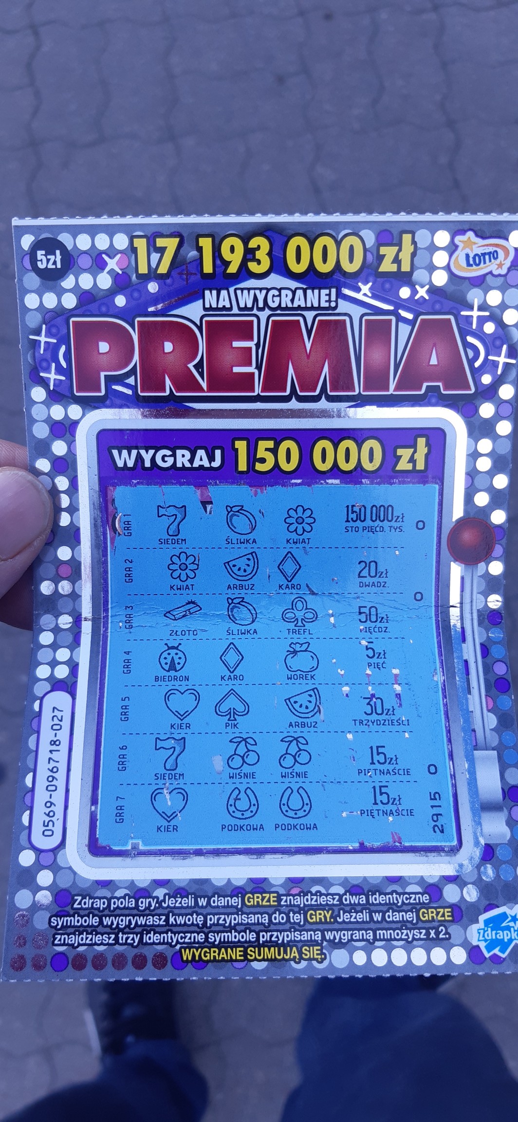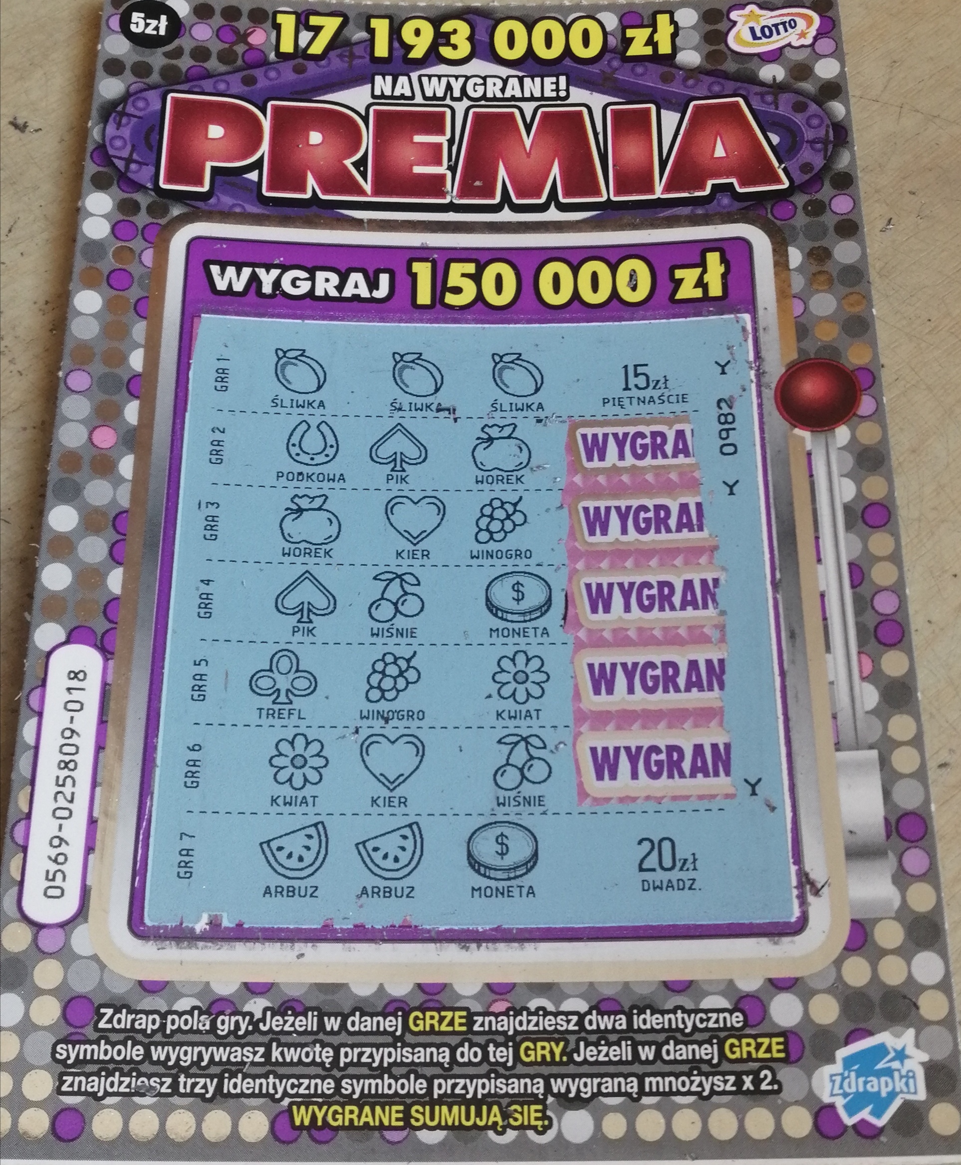 Dla mnie wygrane powyżej 100 zł w zdrapkach w cenie 5 zł i niższej to jakaś abstrakcja. Dobrze, że komuś z forum wpadają takie kwoty