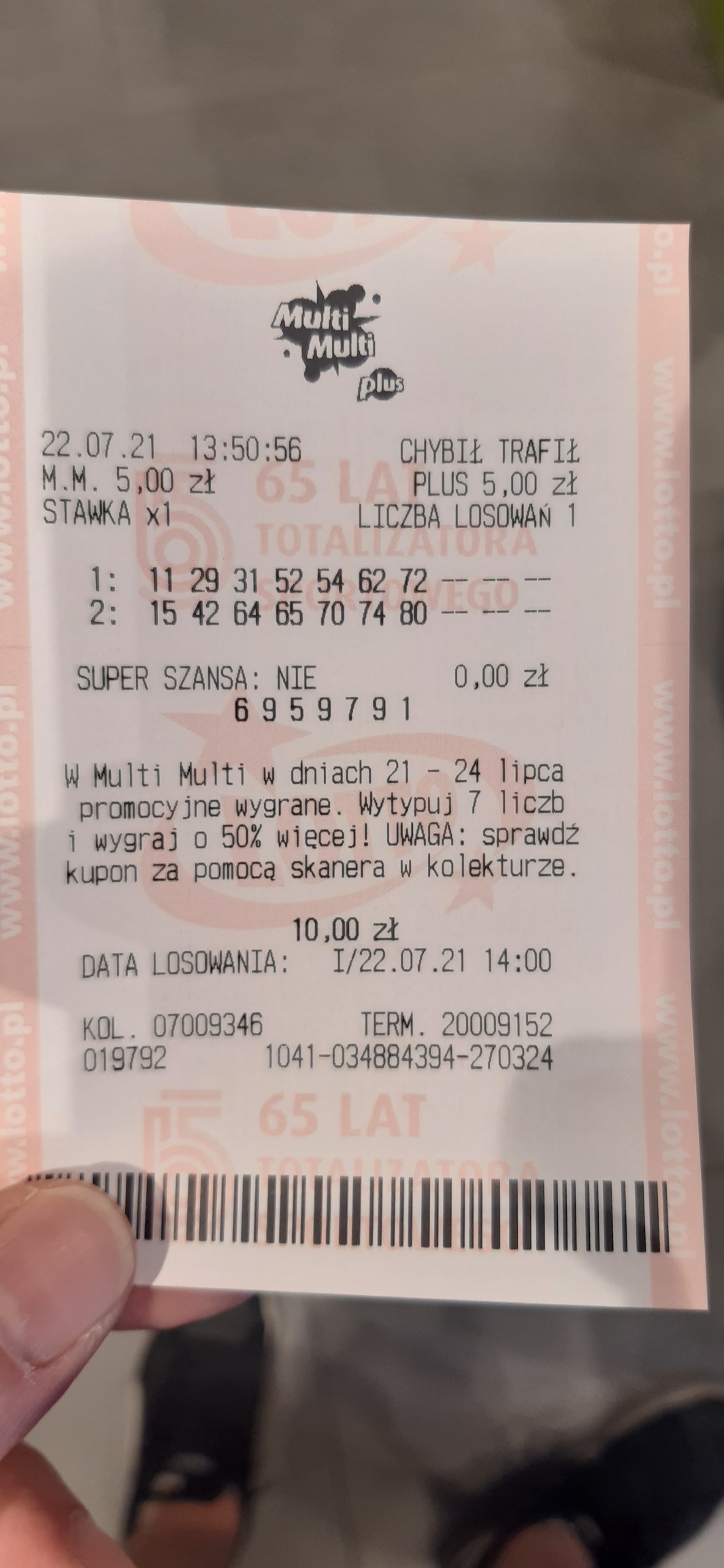 Dodano po 2 godzinach 30 minutach 55 sekundach:Wieczorem powtórzony kupon i wpadło 2/8 Z plusem