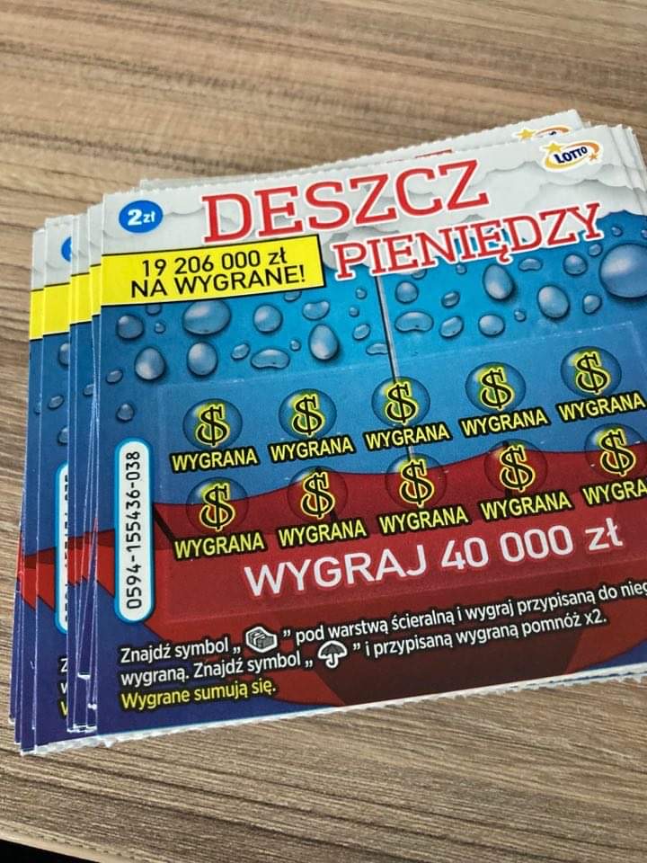 Dzisiaj kupiłem łącznie 5 deszczy z dwóch punktów, farcikiem udało się wydrapać 2x10zł ;)