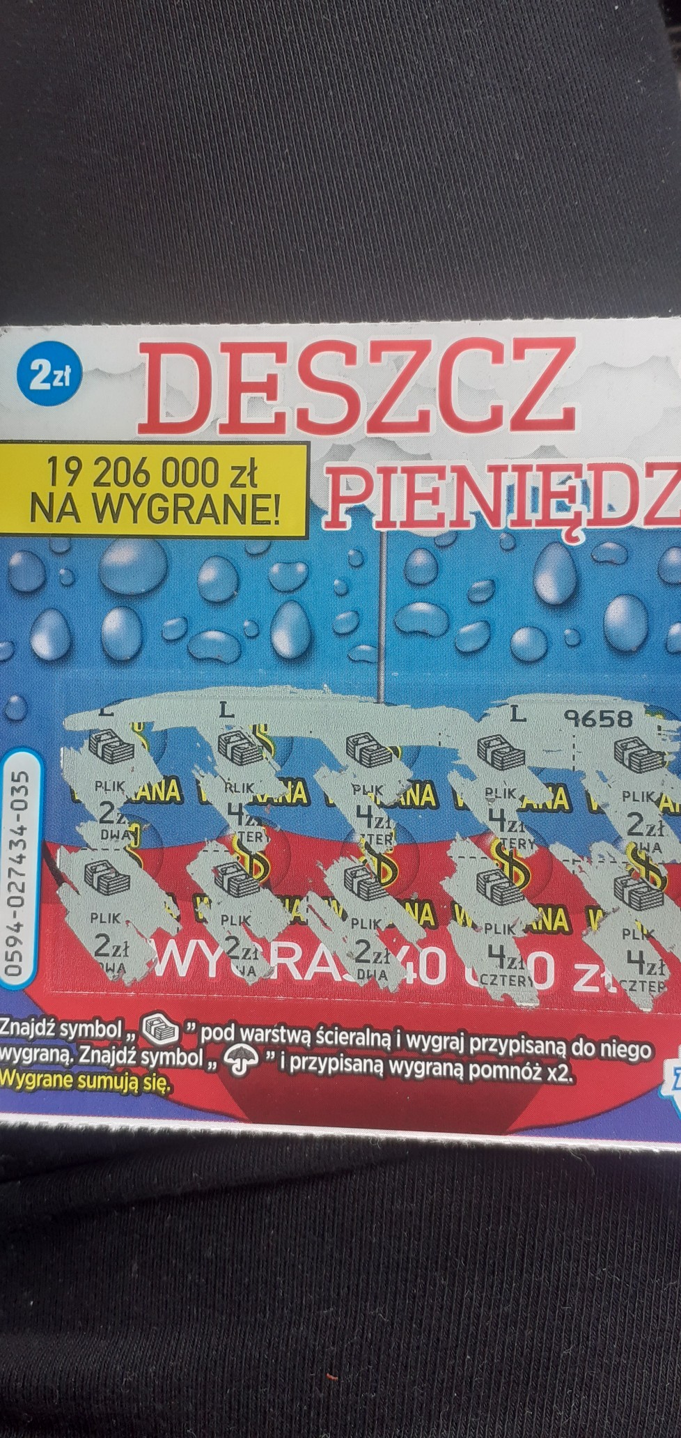 Dzisiaj kupiłem łącznie 5 deszczy z dwóch punktów, farcikiem udało się wydrapać 2x10zł ;)